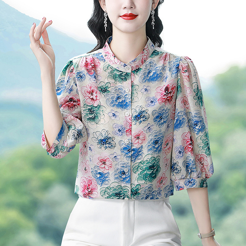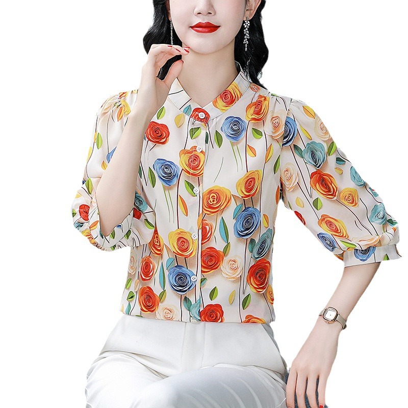 | nameOriginal | Real shot chiffon shirt women's shirt 2024 spring and summer new seven sleeve mulberry silk top high-end foreign style small shirt |
