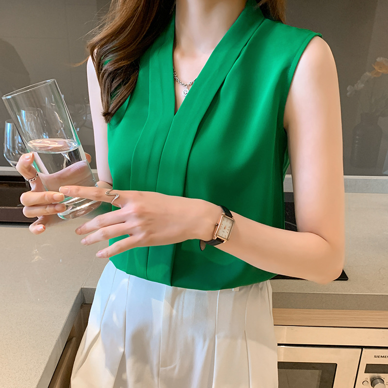 | nameOriginal | Real Shot Chiffon Shirt Women's Summer Loose Large Size Women's All-match Sleeveless Camisole V-neck Inner Top Shirt |