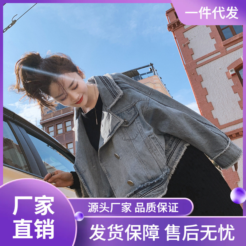 Real shot Denim coat women’s short 2024 autumn new Korean version of loose casual plus size student jacket ins tide