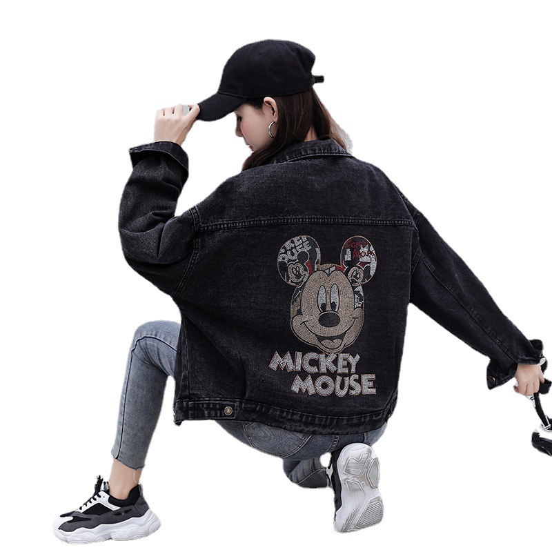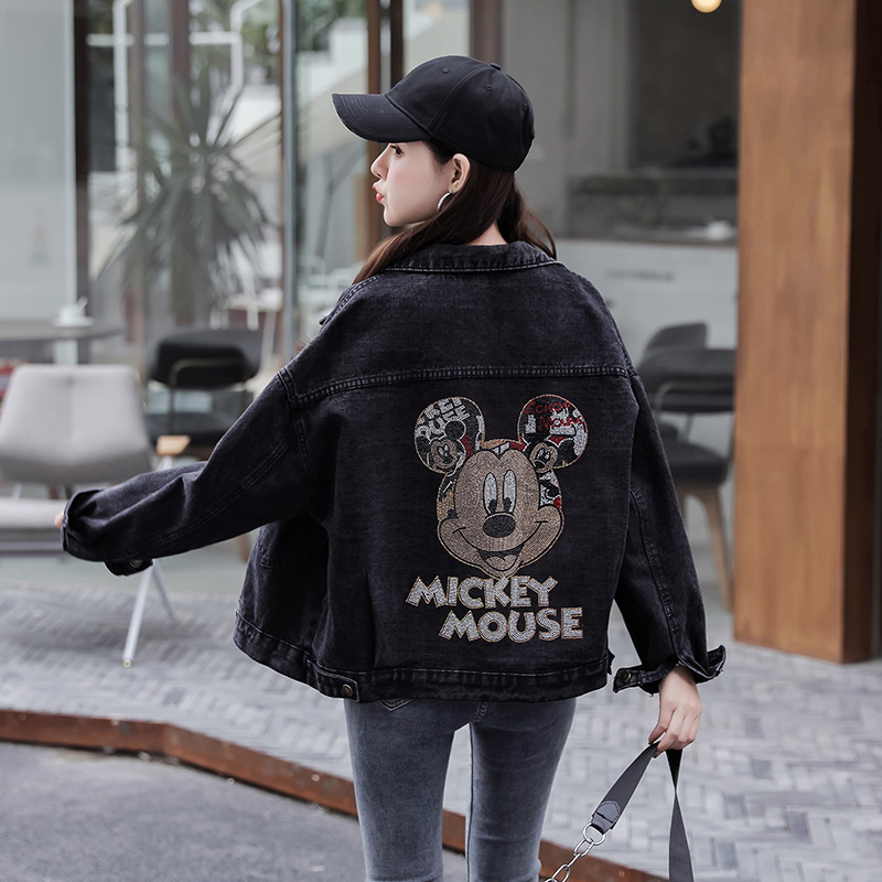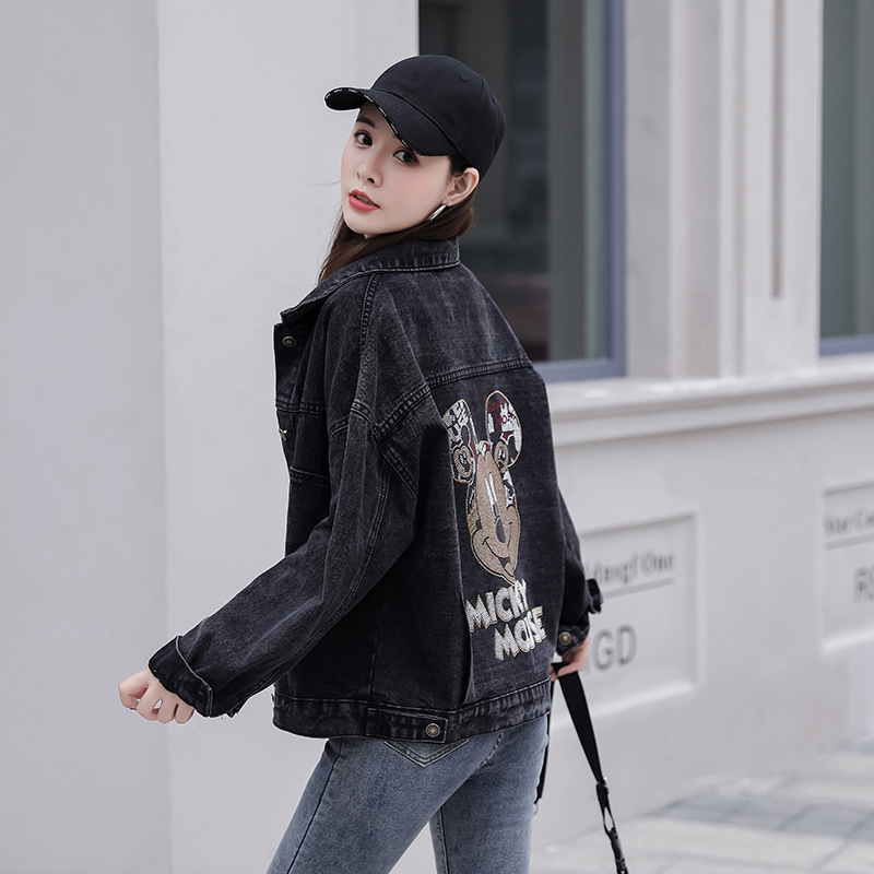 Real Shot Denim Jacket Women's 2024 Spring Wear Students Hot Rhinestone Loose Korean Style TikTok Internet Celebrity BF Casual Jacket Coat