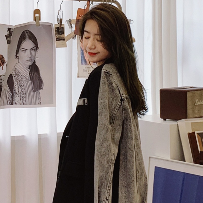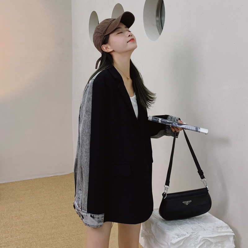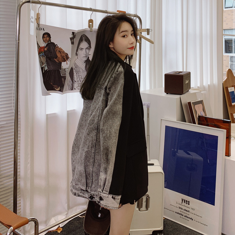 | nameOriginal | Real shot Denim Stitching small suit jacket for women Spring and Autumn 2024 new popular high-grade short top this year |
