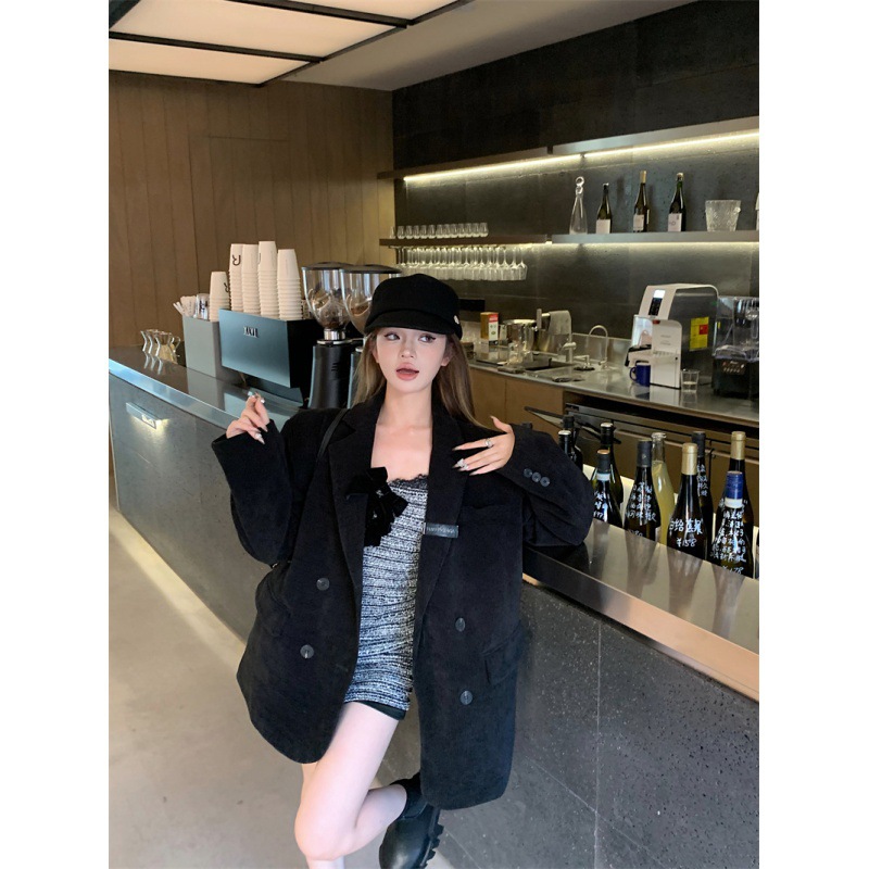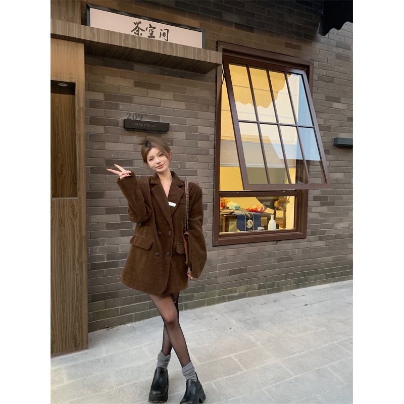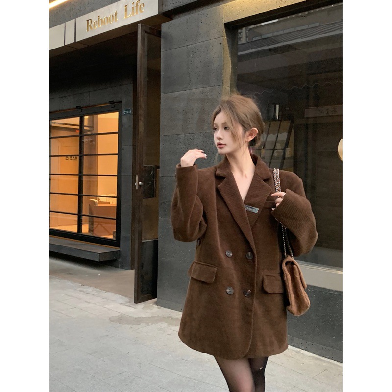 | nameOriginal | Real shot elegant commuter suit jacket Korean retro corduroy top |