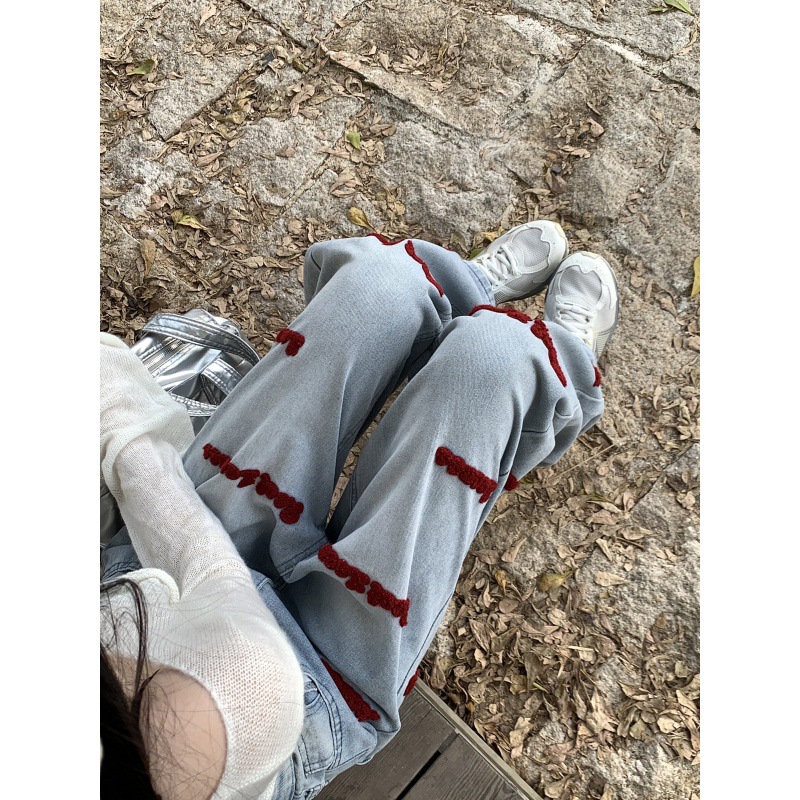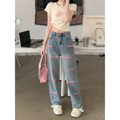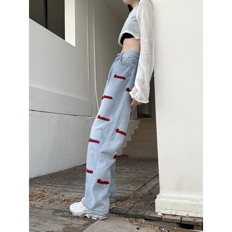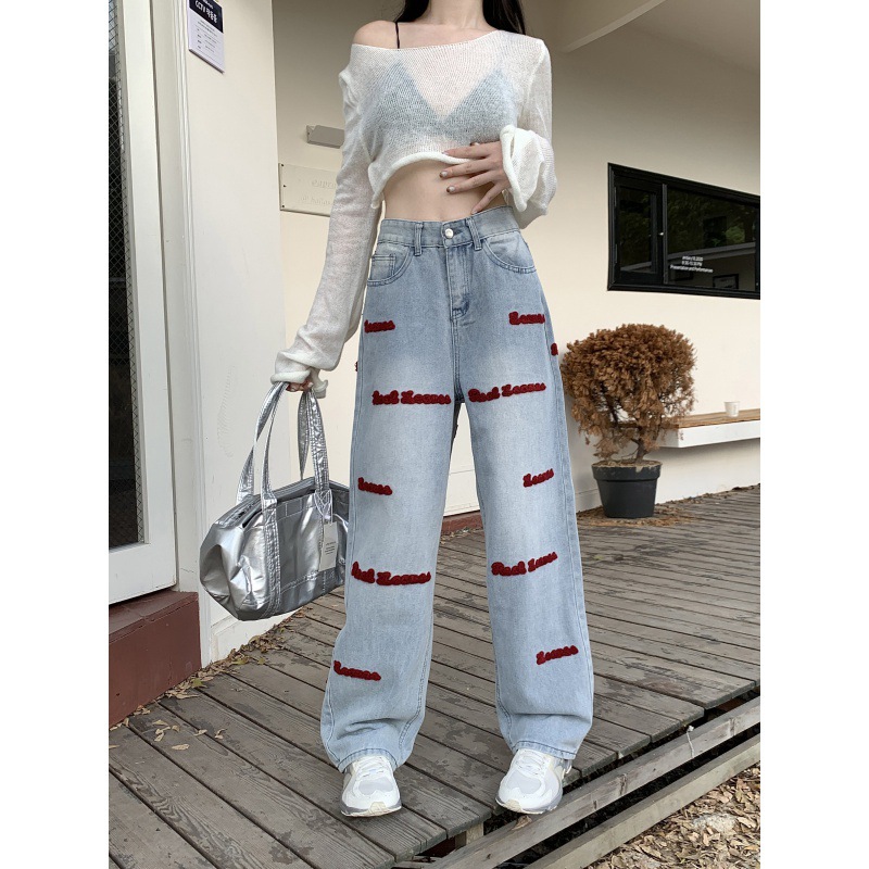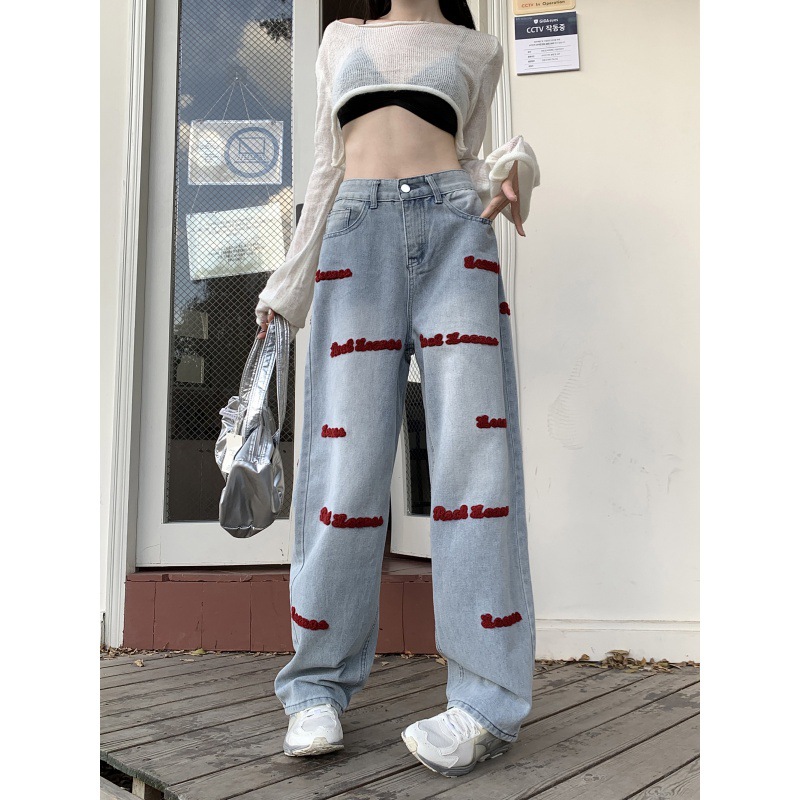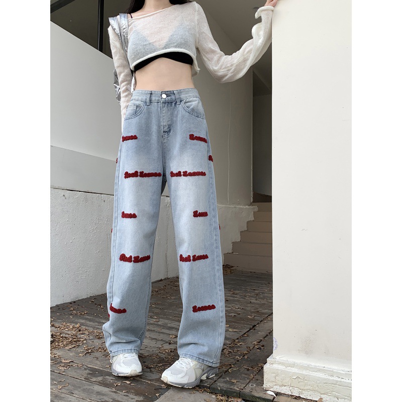 | nameOriginal | Real Shot Embroidered Jeans Women's Spring and Autumn New American Style High Street Design Sense Pants Straight Tube Loose High Waist Wide Leg Pants |