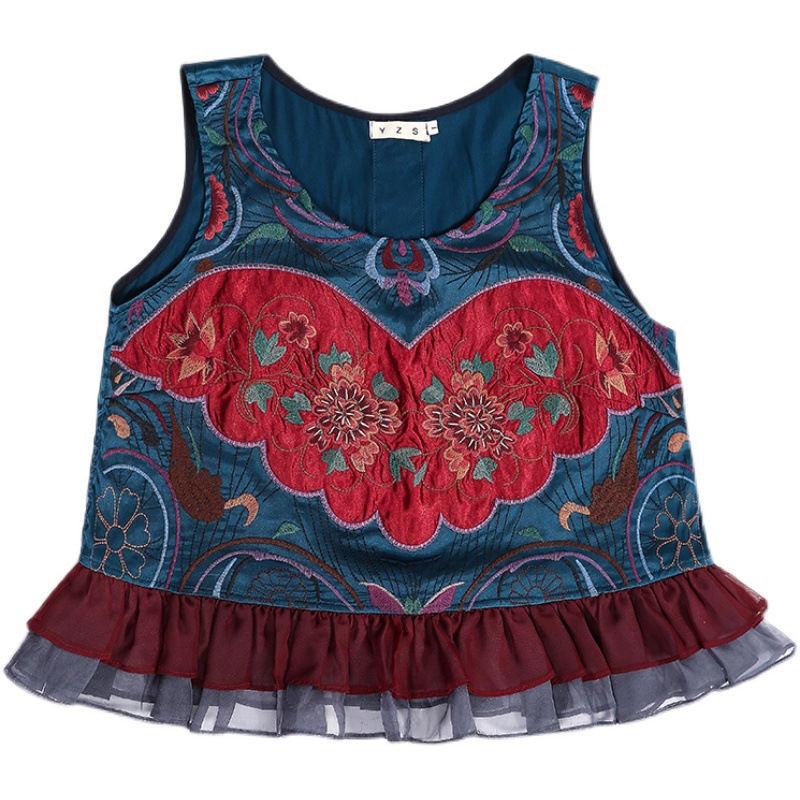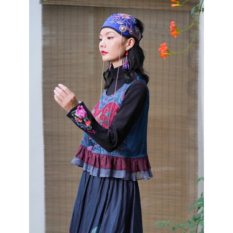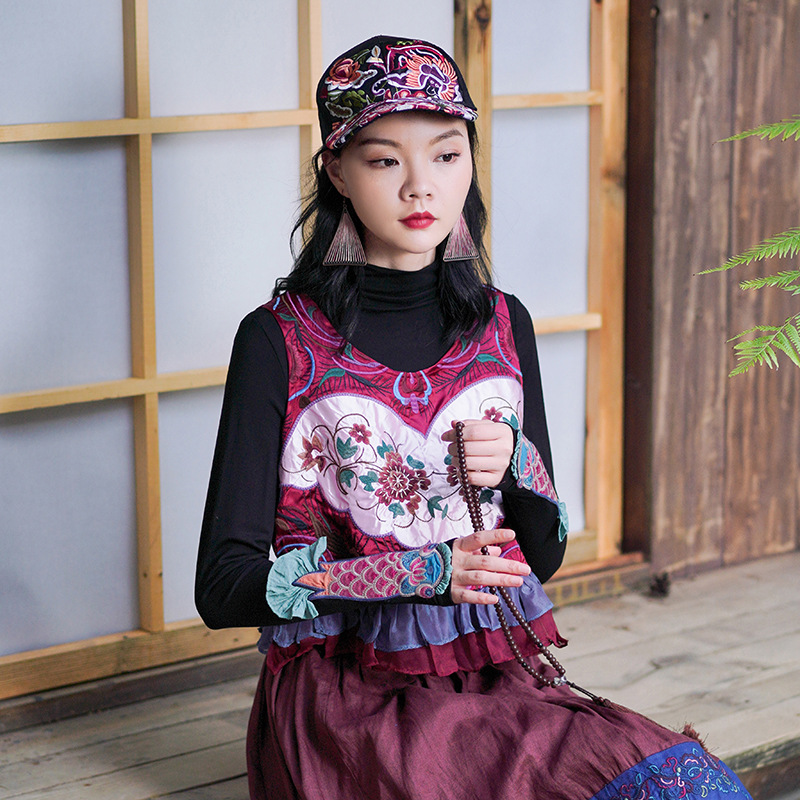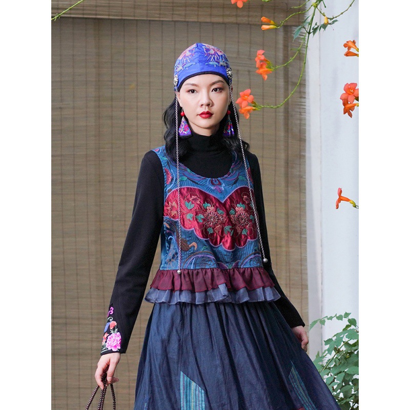 | nameOriginal | Real shot ethnic embroidery vintage vest short sleeveless top overalls waistcoat crew neck coat |