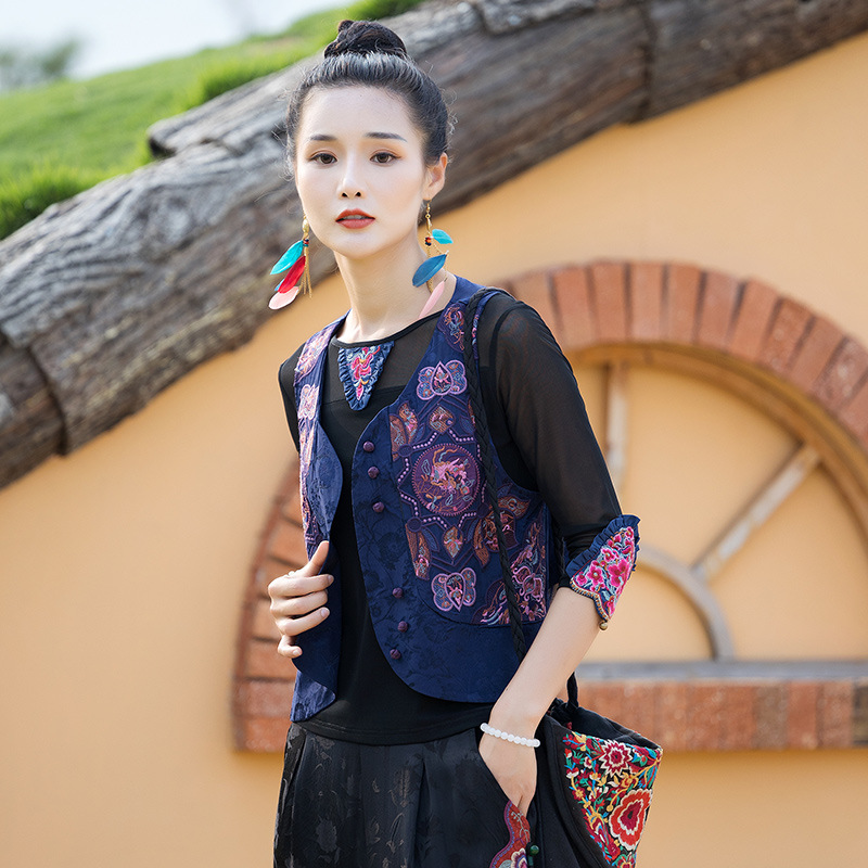 | nameOriginal | Real shot ethnic style 2022 spring and summer thin satin embroidery Joker short vest coat |