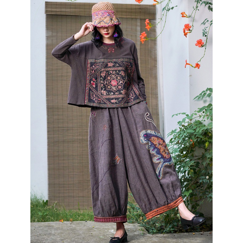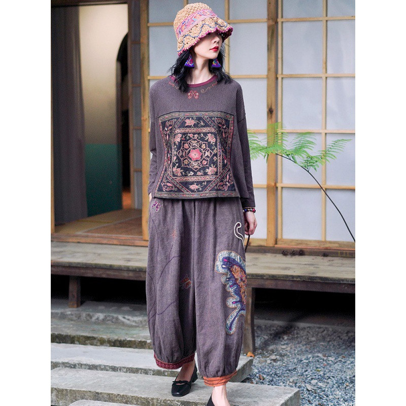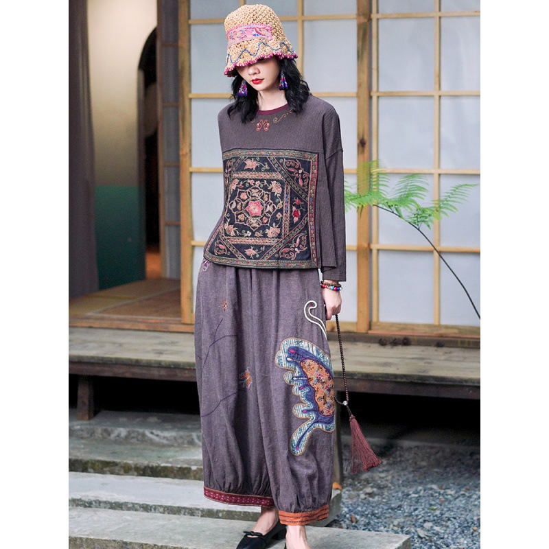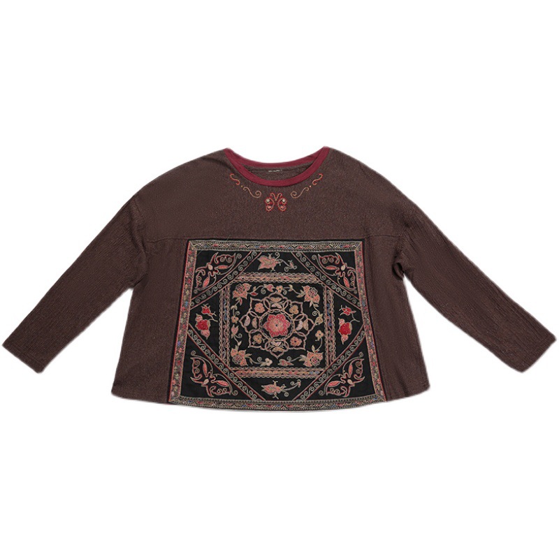 | nameOriginal | Real Shot Ethnic Style Retro Old Embroidered Short Loose Round Neck Slimming Casual Long Sleeve Shirt Stitching Embroidered T-Shirt |