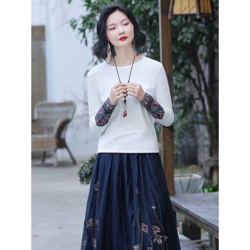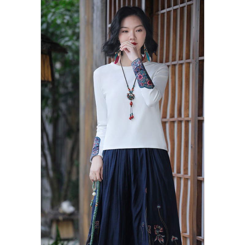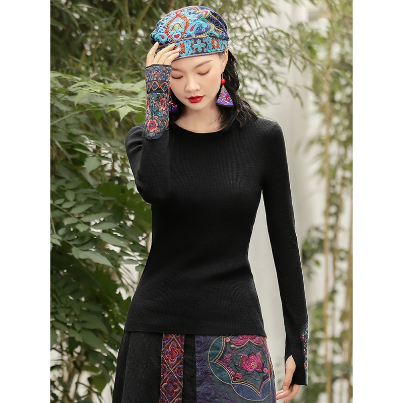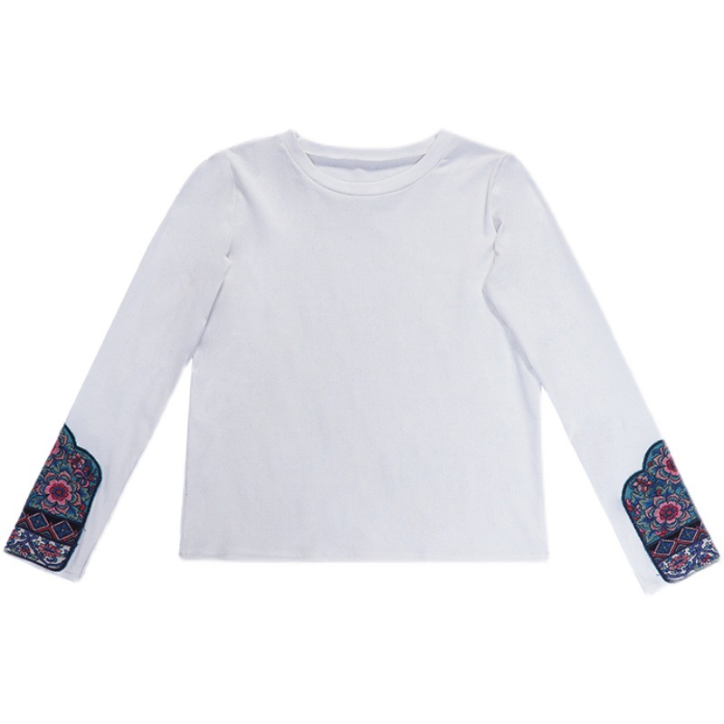 | nameOriginal | Real shot ethnic style round neck bottoming slim slimming long sleeve T-shirt pullover solid color short embroidered shirt |