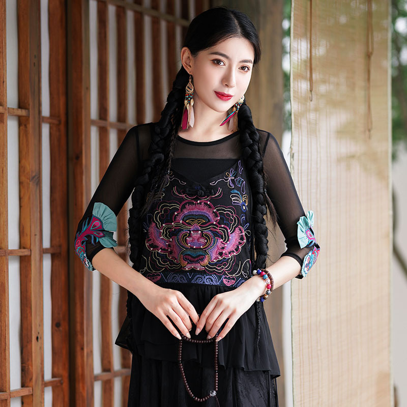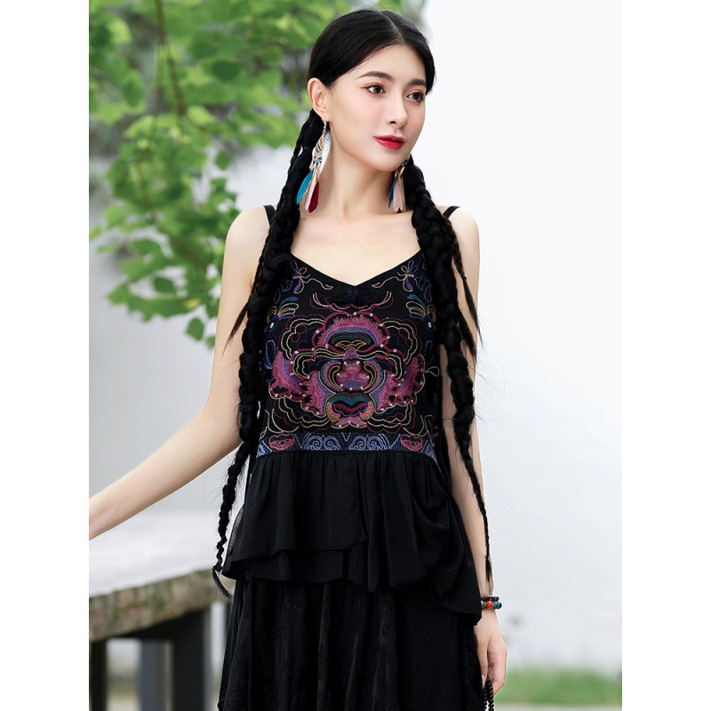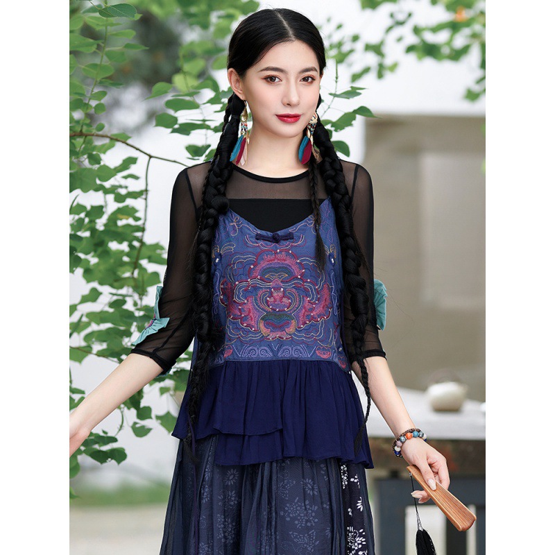 | nameOriginal | Real Shot Ethnic Style Vintage Embroidered Loose Sling Art Short Outer Vest Pullover Commuter Women's Top |