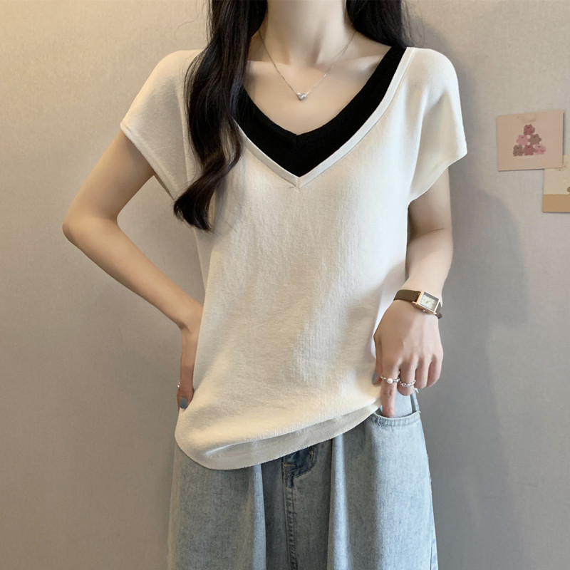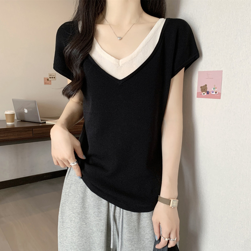 Real shot fat sister summer plus size women’s 2024 new fake two short sleeve T-shirt flying sleeve ice silk top