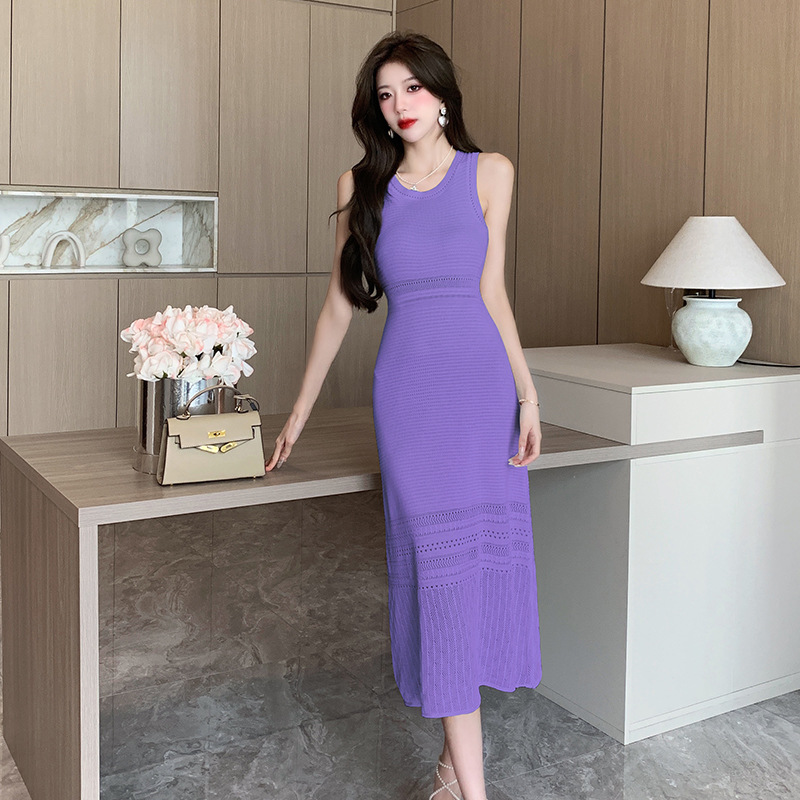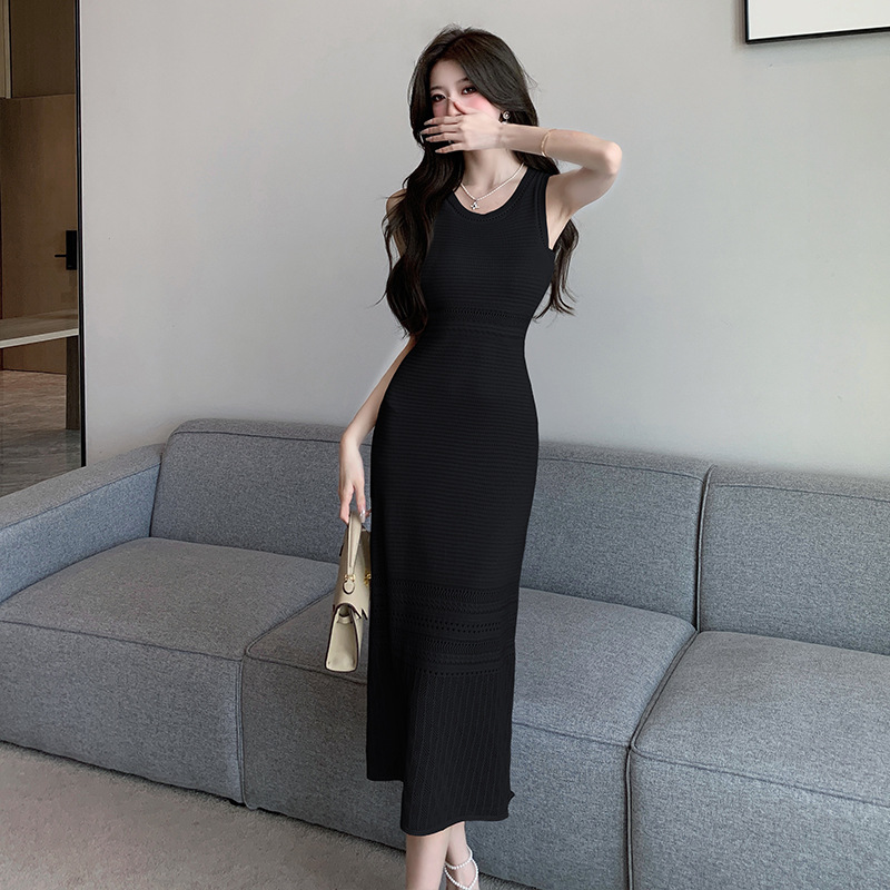 | nameOriginal | Real shot French White gentle style sleeveless dress High sense design sense waist slim hollow knit dress |