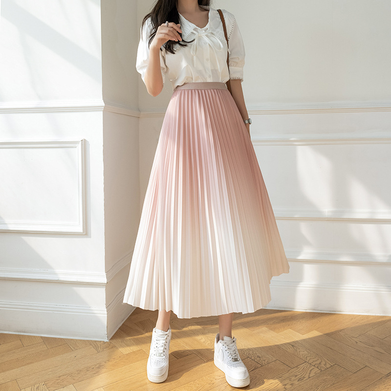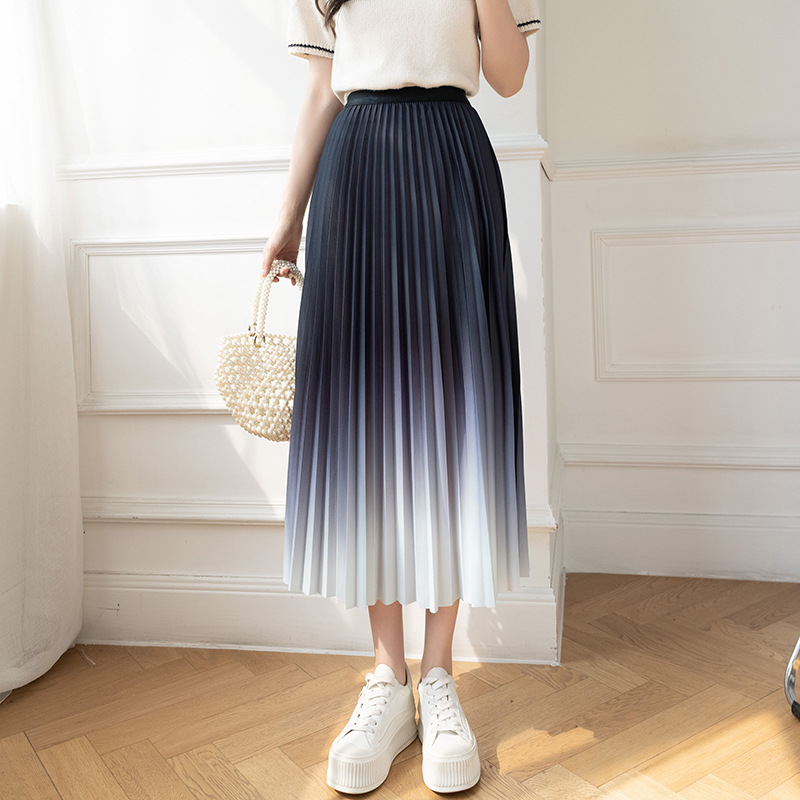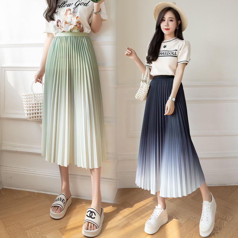| nameOriginal | Real shot gradient color skirt women's Korean-style high waist slimming draping pleated skirt elegant mid-length A- line skirt |