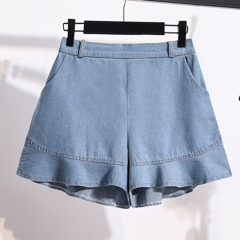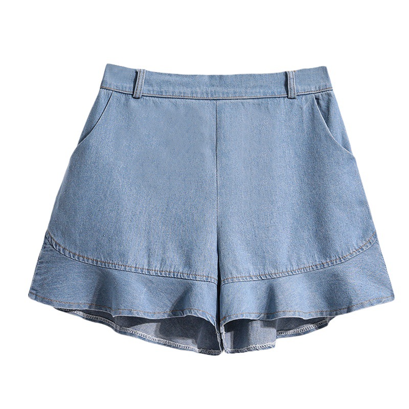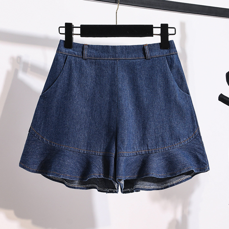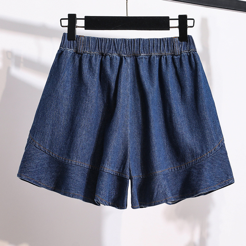 Real Shot High Waist Denim Shorts Women’s All-match Showing Leg Long Retro Wide Leg Hot Pants A- shaped Thin Slim Summer