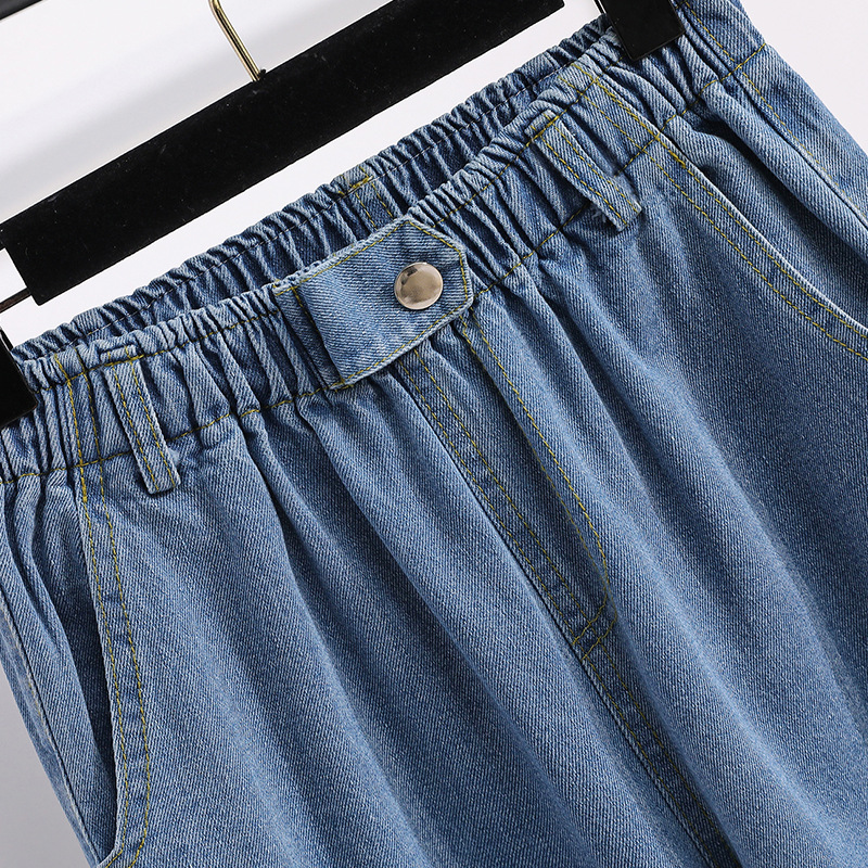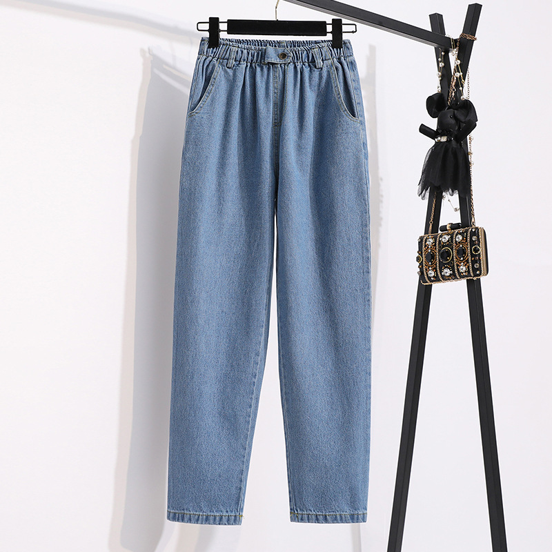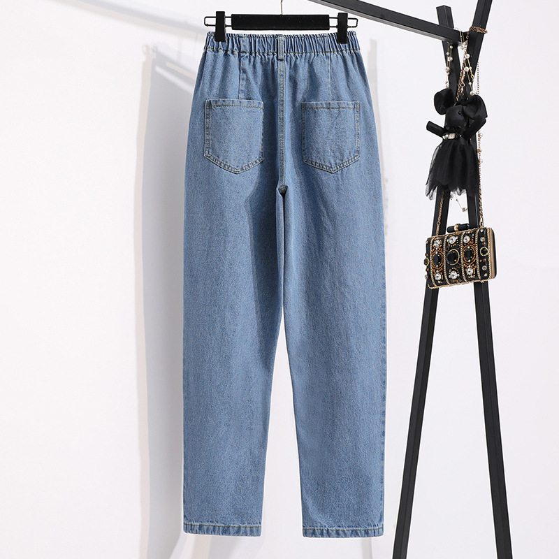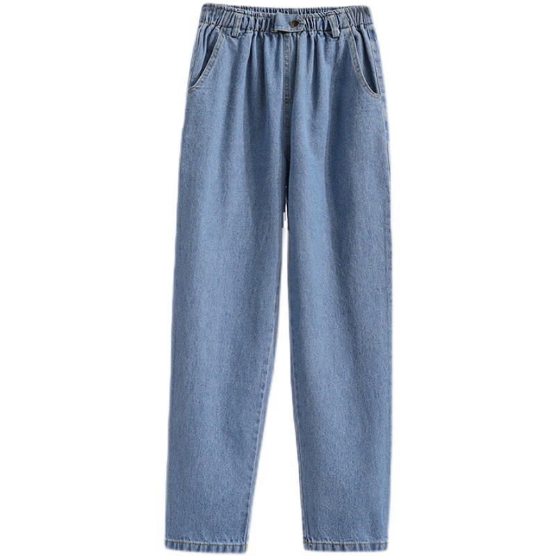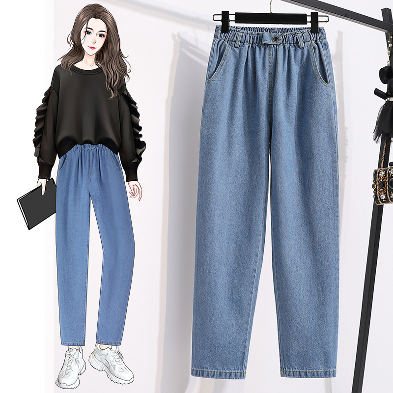 Real shot high waist washed denim cotton straight casual harem pants women’s autumn wear slimming versatile plus size cigarette tube radish pants