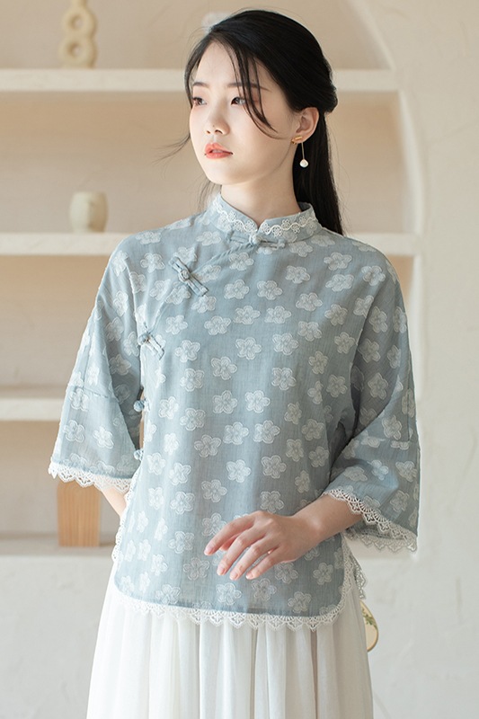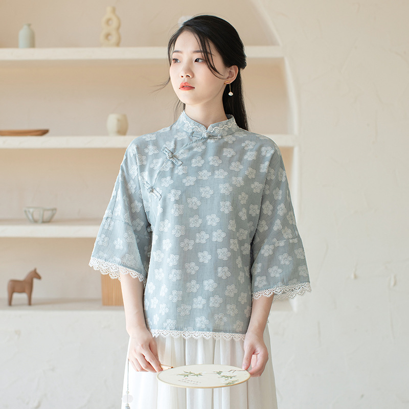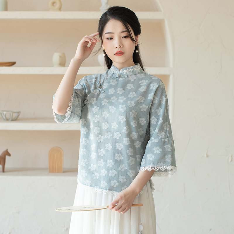 Real Shot Improved Fairy Zen Tea Suit Women’s Retro Buckle Chinese Style Top Cheongsam
