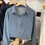 Real shot in stock 2024 spring Korean style love embroidered POLO collar single-breasted loose long sleeve soft Denim shirt