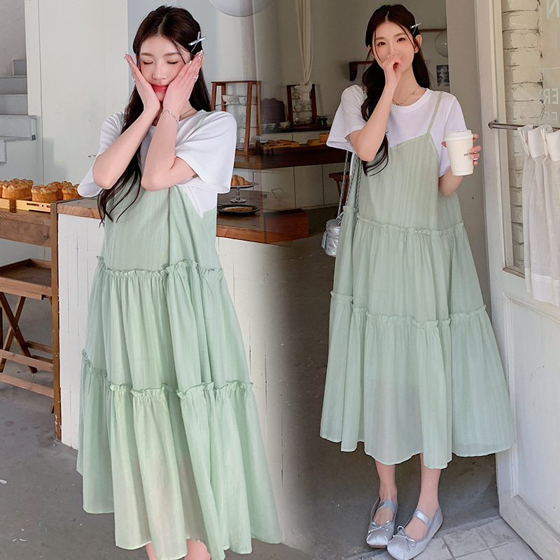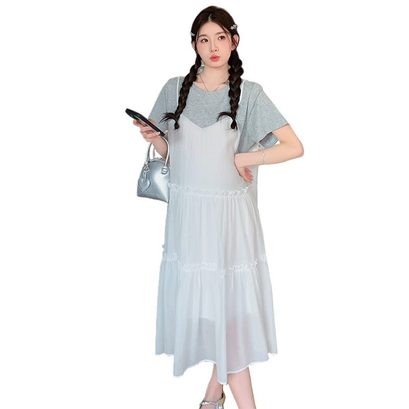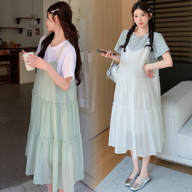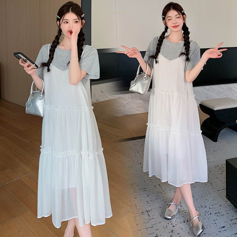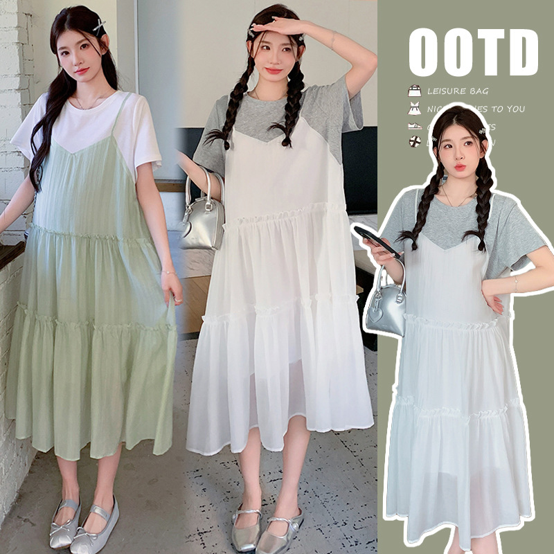 | nameOriginal | Real shot in stock ~ 2024 summer new maternity Korean T-shirt stitching chiffon dress fake two-piece set |