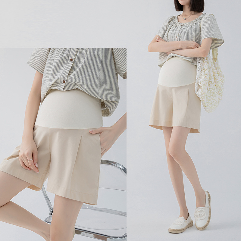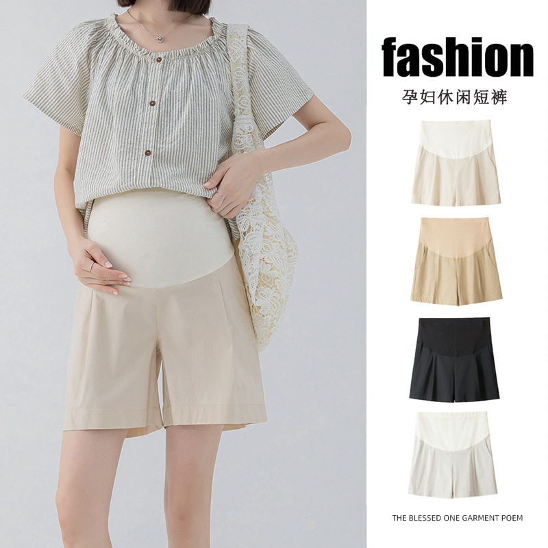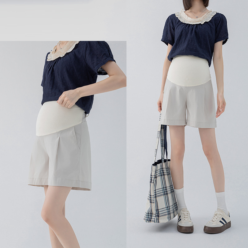 Real shot in stock 2024 summer new simple all-match breathable refreshing five-point belly drag pregnant women shorts