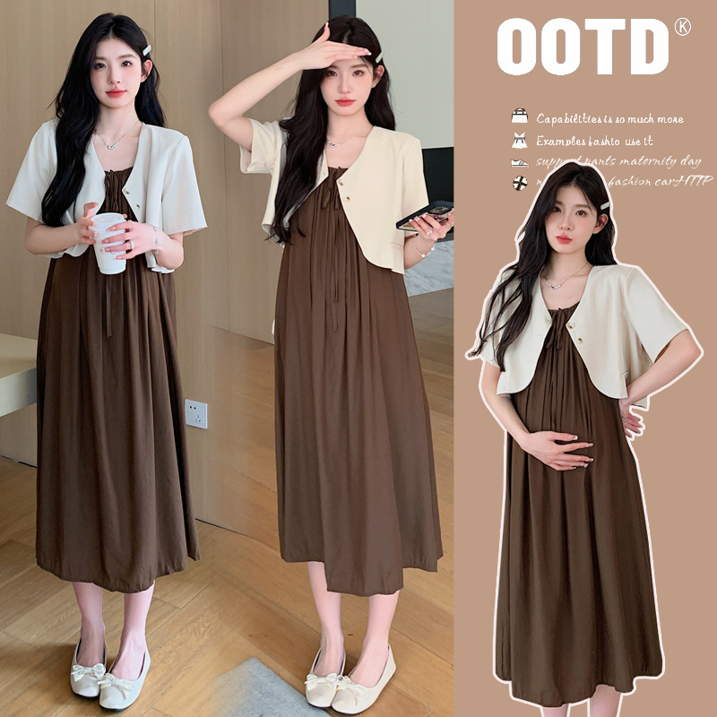 Real shot in stock ~ 2024 summer suit Korean fashion loose sunscreen cardigan dress two-piece set