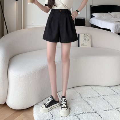 | nameOriginal | Real shot in stock casual shorts women's 2024 summer new all-match elastic waist high waist A- line loose slim wide leg shorts |