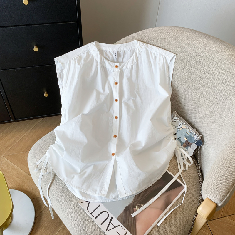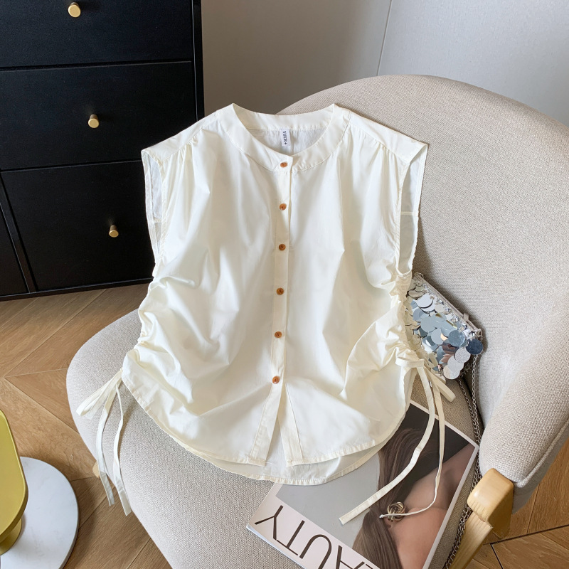 | nameOriginal | Real Shot in stock Korean Style Gentle Style All-match Shirt Women's Summer Design Pleated Loose Drawstring Sleeveless Top |