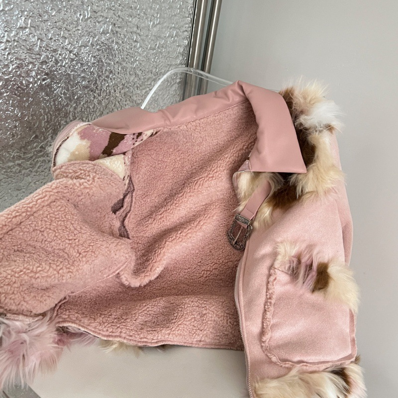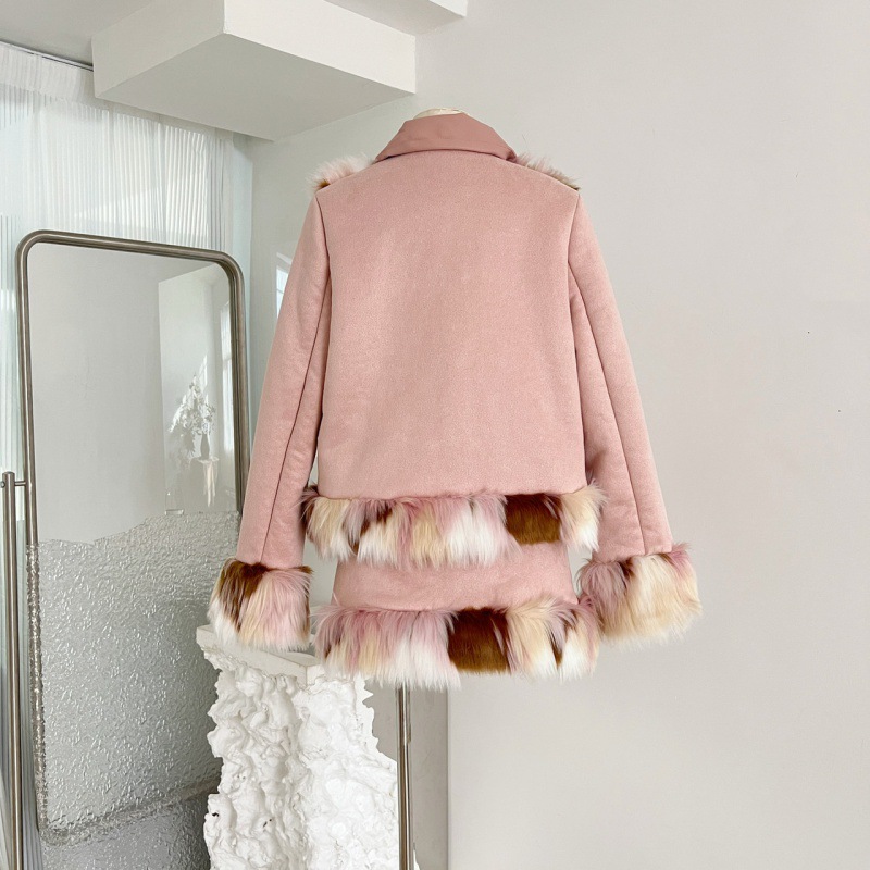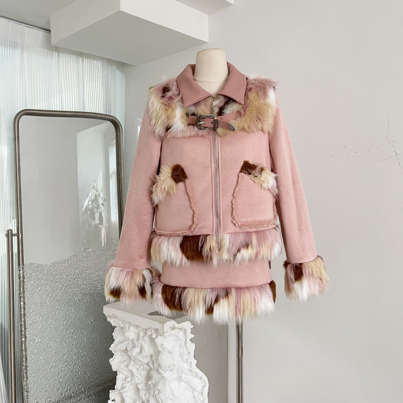 | nameOriginal | Real shot in stock leather pink suede lambswool fur stitching fashion suit skirt for women autumn and winter |