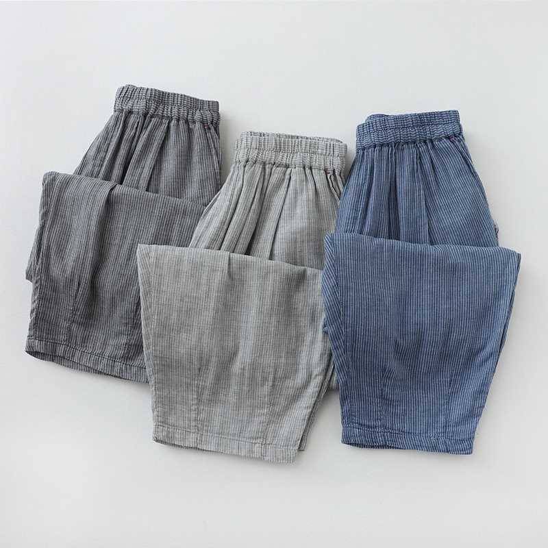 Real Shot in stock Loose Casual Striped Carrot Pants Summer New Cotton and Linen Hallen Pants Women's plus size