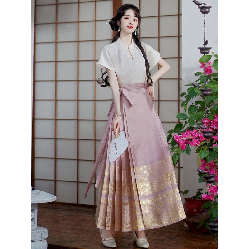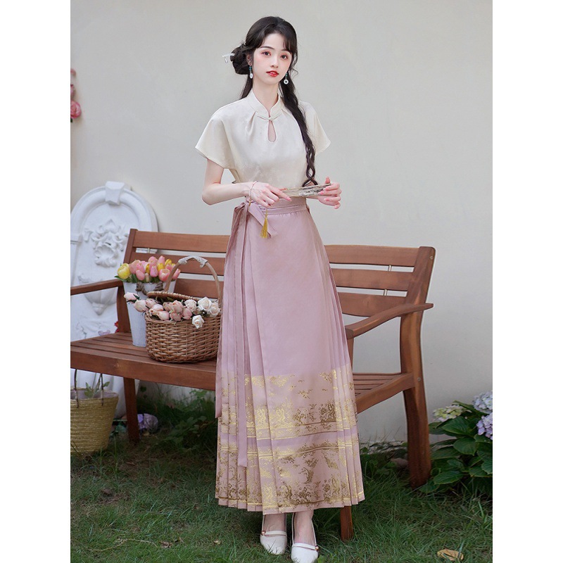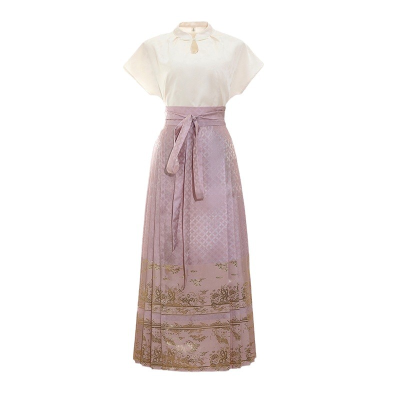 | nameOriginal | Real Shot in stock New Chinese Style National Style Jacquard Plate Button Short Sleeve Top Heavy Industry Weaving Gold Horse Face Skirt Two-piece Set |