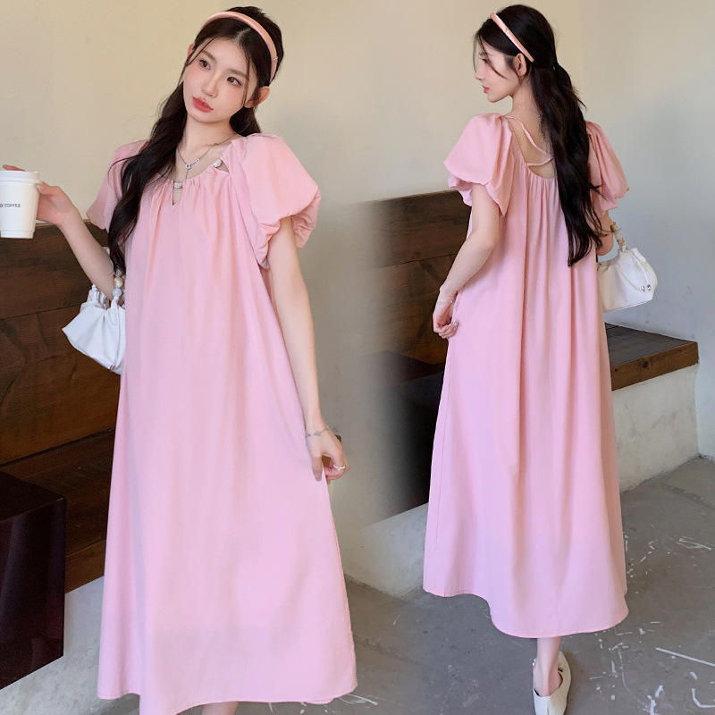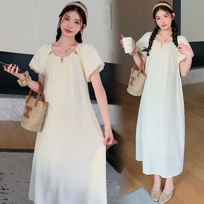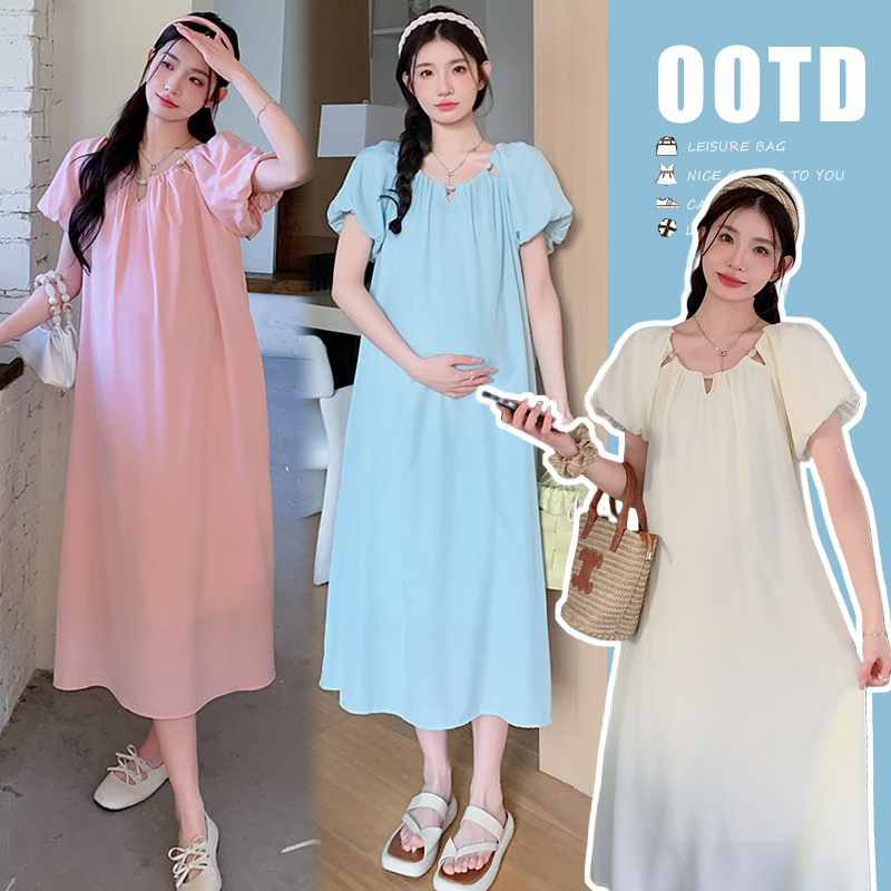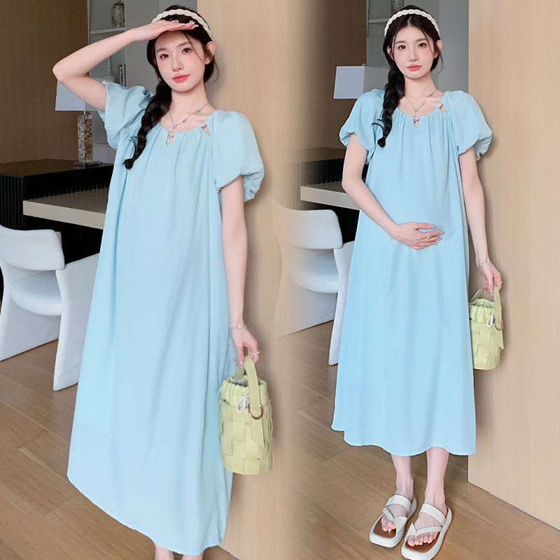 | nameOriginal | Real shot in stock ~ pregnant women summer fashion temperament Korean dress French simple thin retro dress |