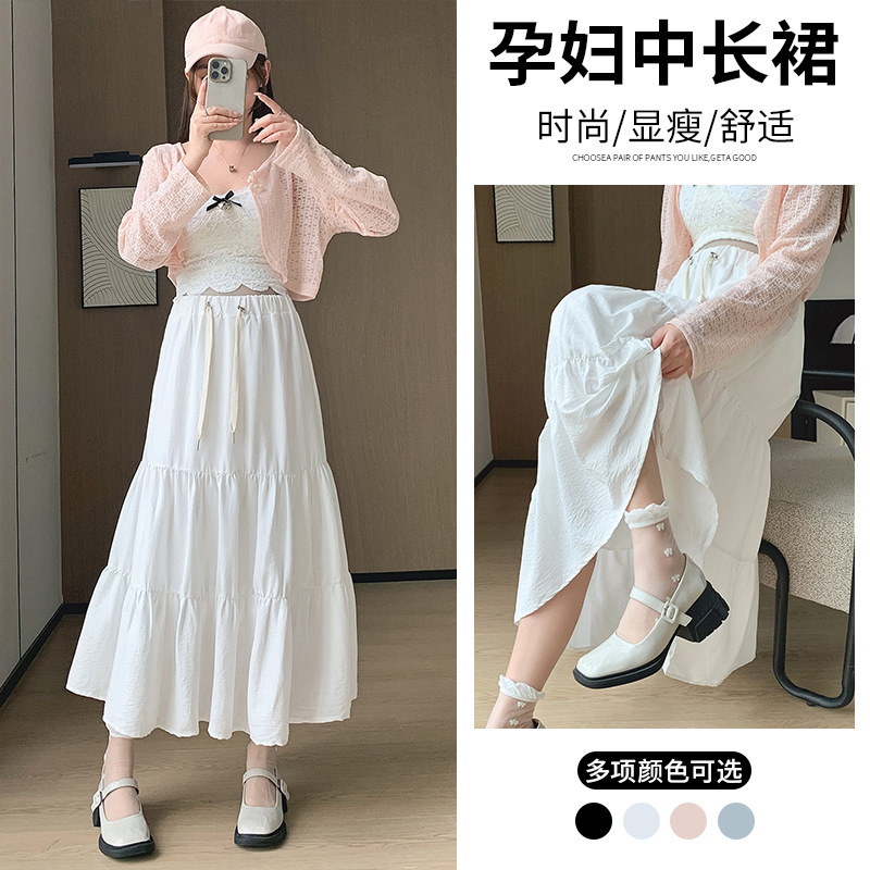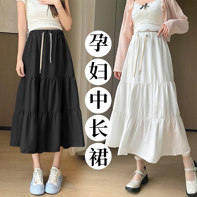 | nameOriginal | Real Shot in stock White Pregnant Women's Skirt Summer New Mid-length High Waist A- Line Long Skirt Slimming Puffy Cake Skirt |