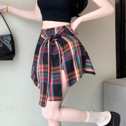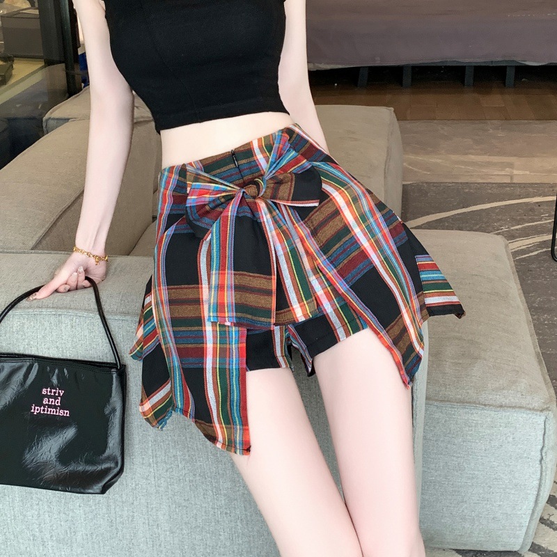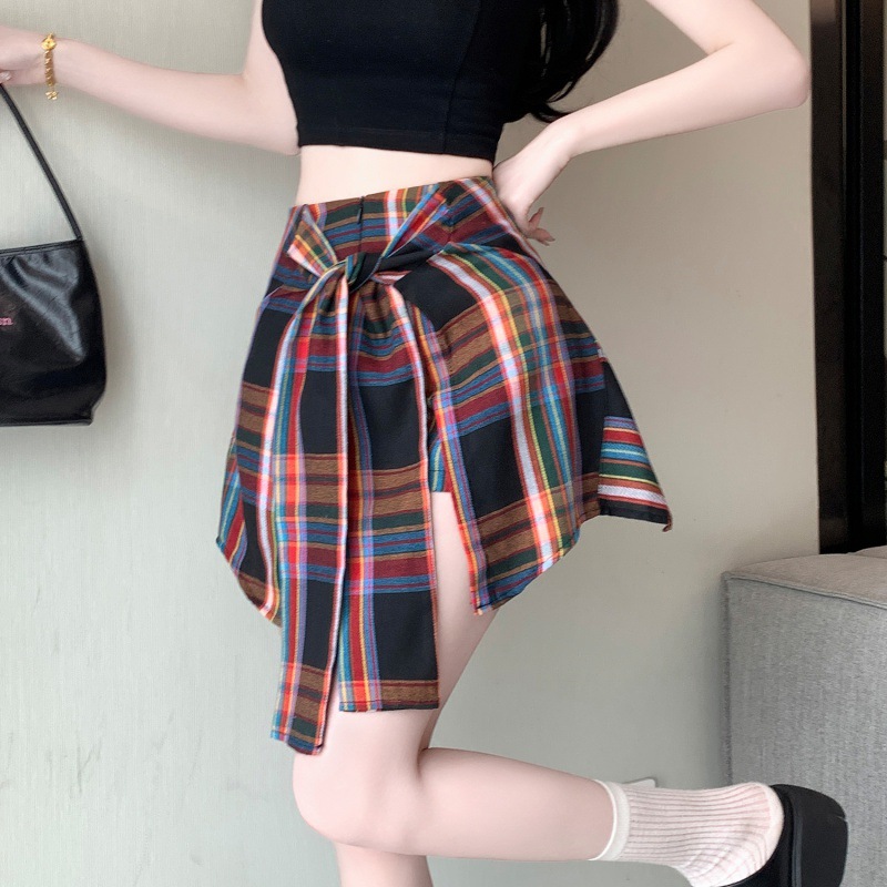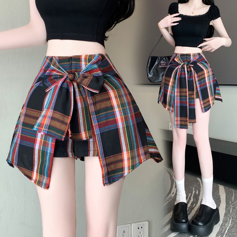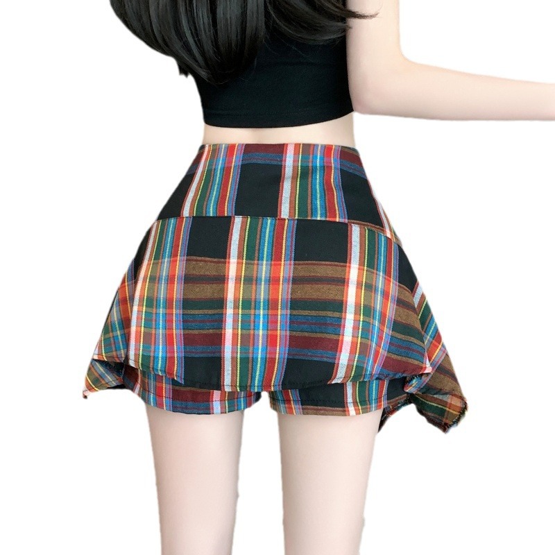 Real shot irregular plaid skirt A- line skirt new skirt pants anti-light casual slim hot girl skirt pants