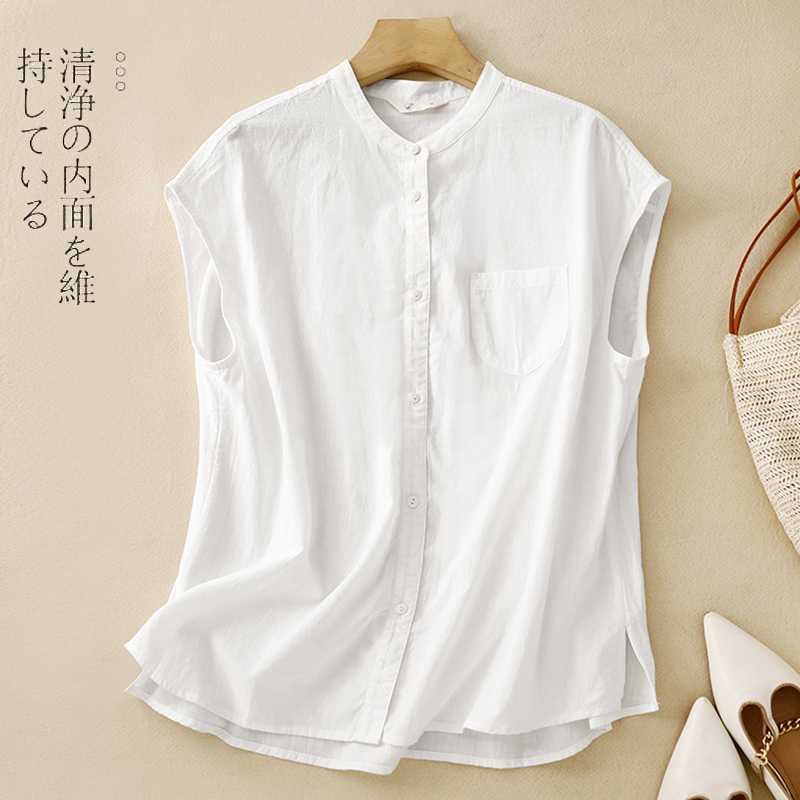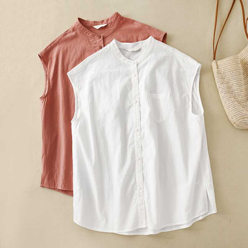 | nameOriginal | Real Shot Japanese Pink Pure Cotton Shirt Women's Summer Artistic Simple Round Neck Vest Sleeveless Shirt Top Small Shirt |