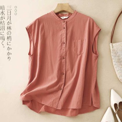 | nameOriginal | Real Shot Japanese Pink Pure Cotton Shirt Women's Summer Artistic Simple Round Neck Vest Sleeveless Shirt Top Small Shirt |