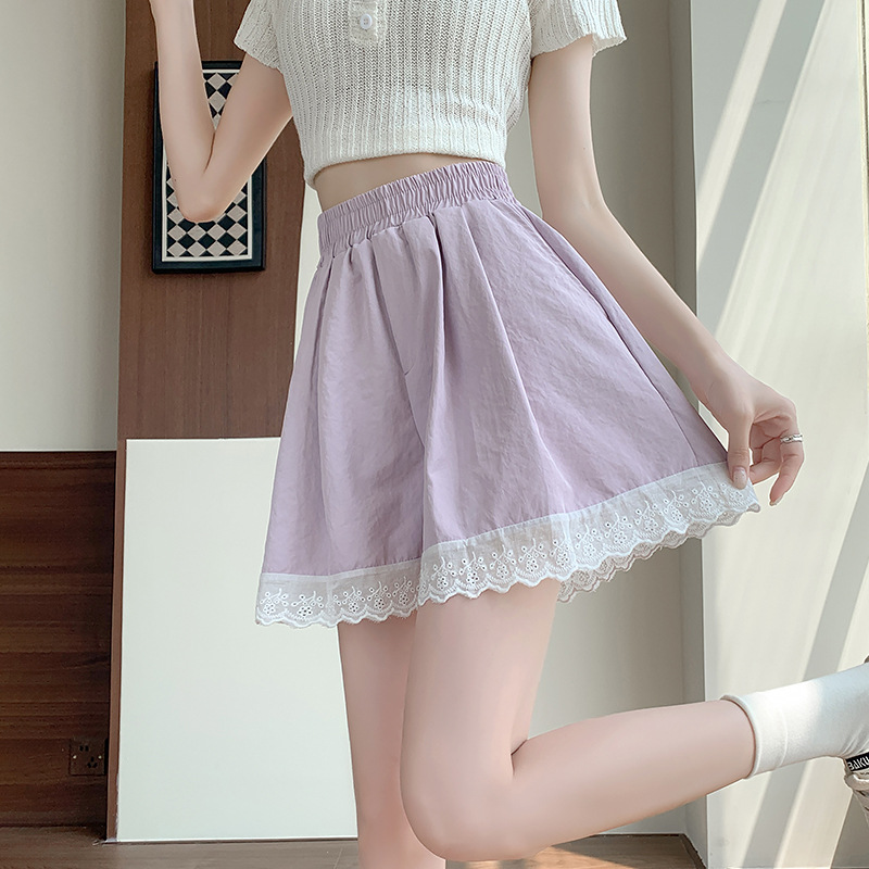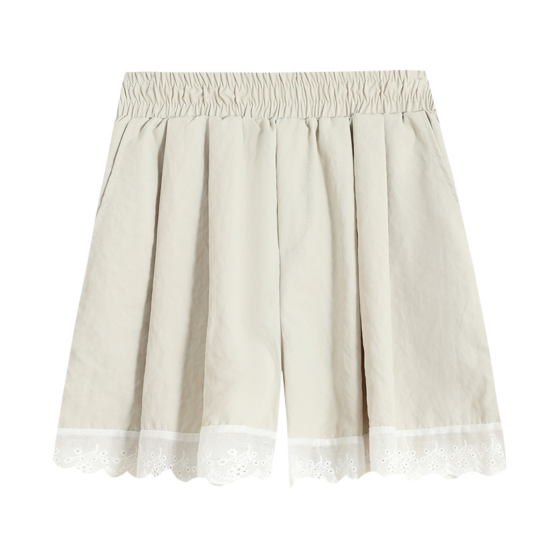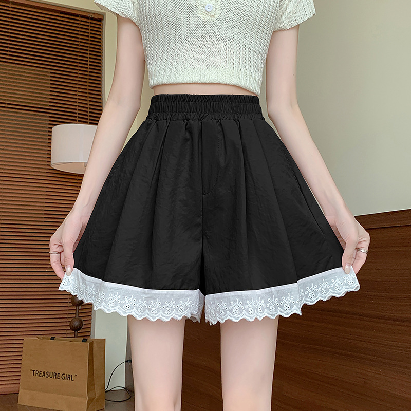 | nameOriginal | Real Shot Lace Edge Ice Silk Shorts Women's 2024 New Summer High Waist Slimming Loose Casual Small Wide Leg Pants |