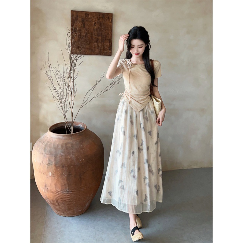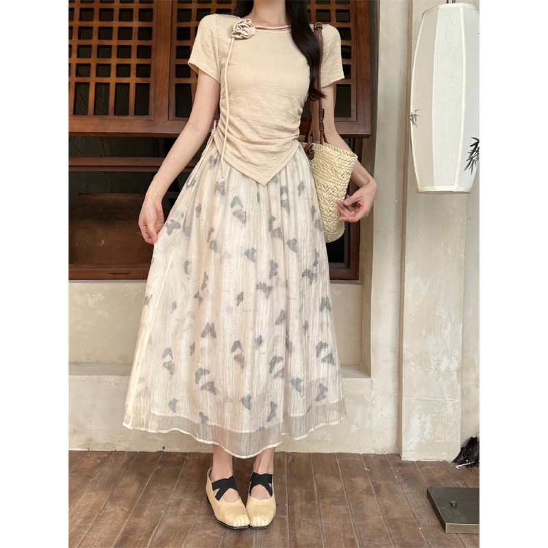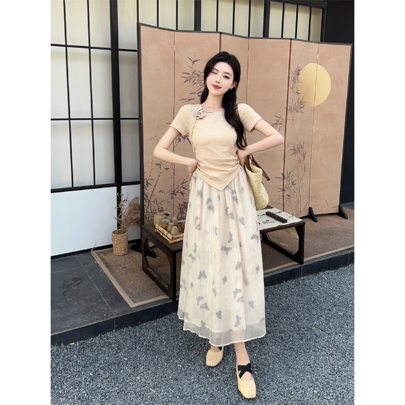 | nameOriginal | Real Shot Large Size Fat mm2024 Summer New Sweet Flower Top Fairy Butterfly Skirt Gauze Dress Set |