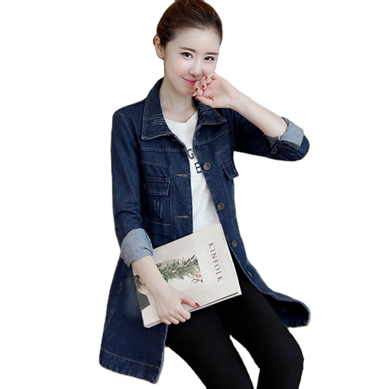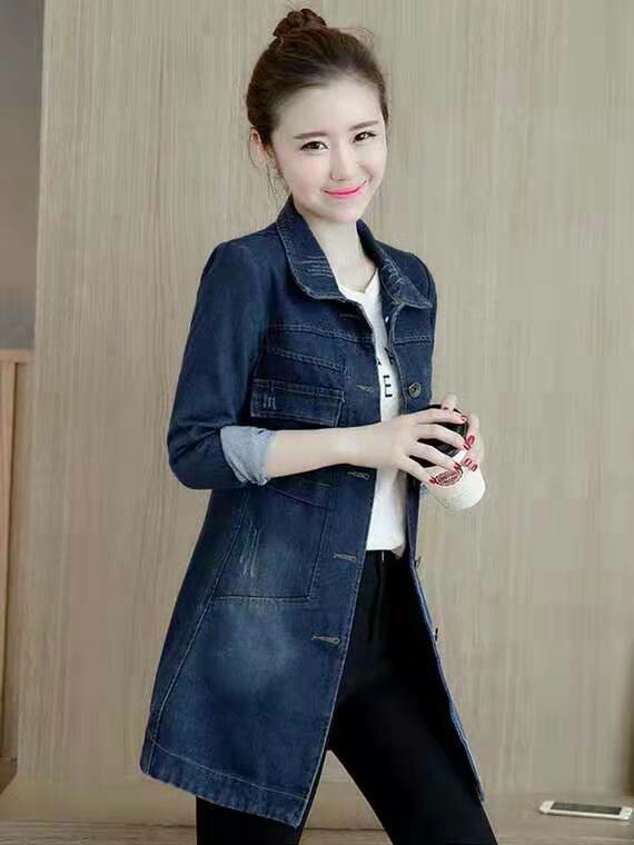 | nameOriginal | Real Shot Large Size Women's Korean Denim Jacket for Chubby Girls Women's Slim-fit Mid-length Trench Coat Long-sleeved Denim Top |