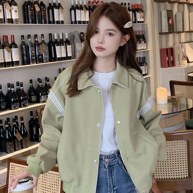 | nameOriginal | Real shot light green casual jacket women's short 2024 Autumn New Korean style young fried street top |