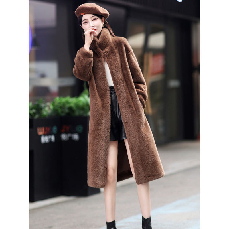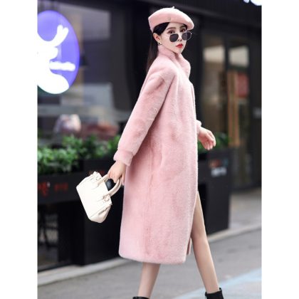 Real shot long mink velvet coat women's 2024 princess mink sheared thickened imitation fur coat