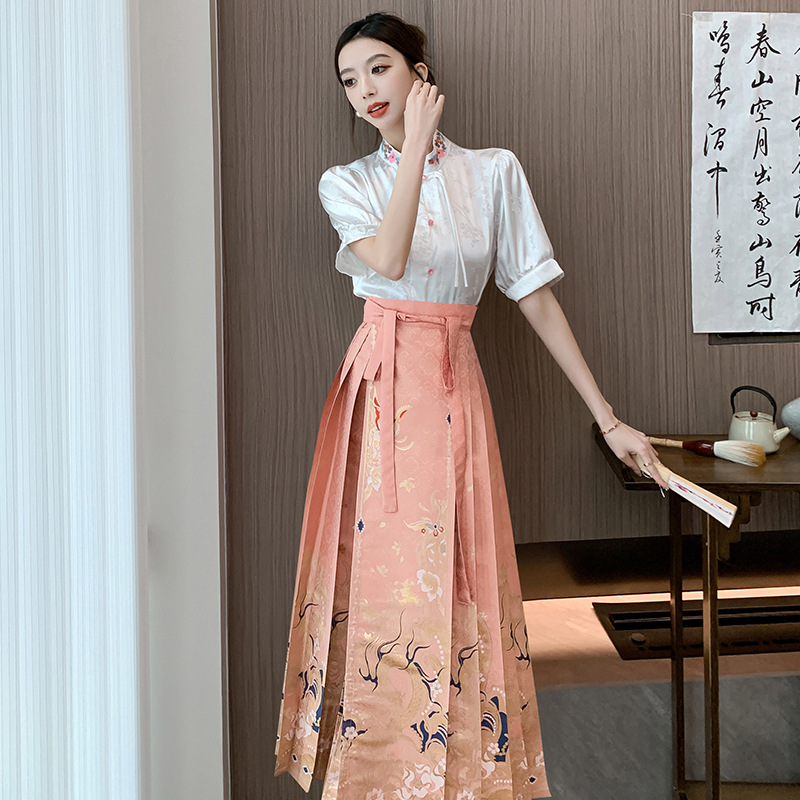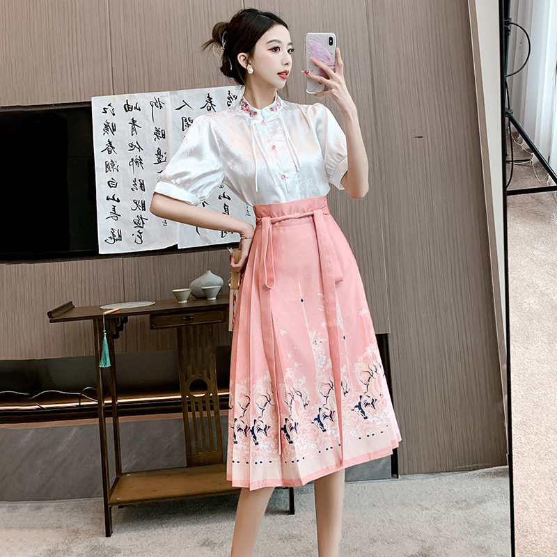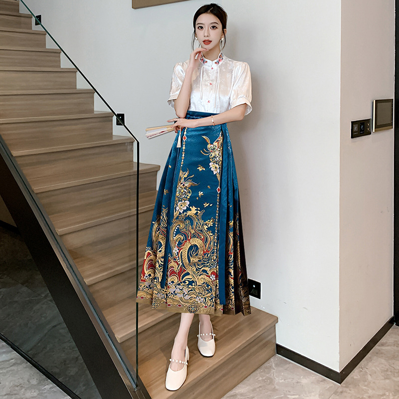 Real Shot Longyue Fumian New Hanfu Dragon Year Horse Face Skirt Women’s New Chinese National Style Embroidered Shirt Daily Suit