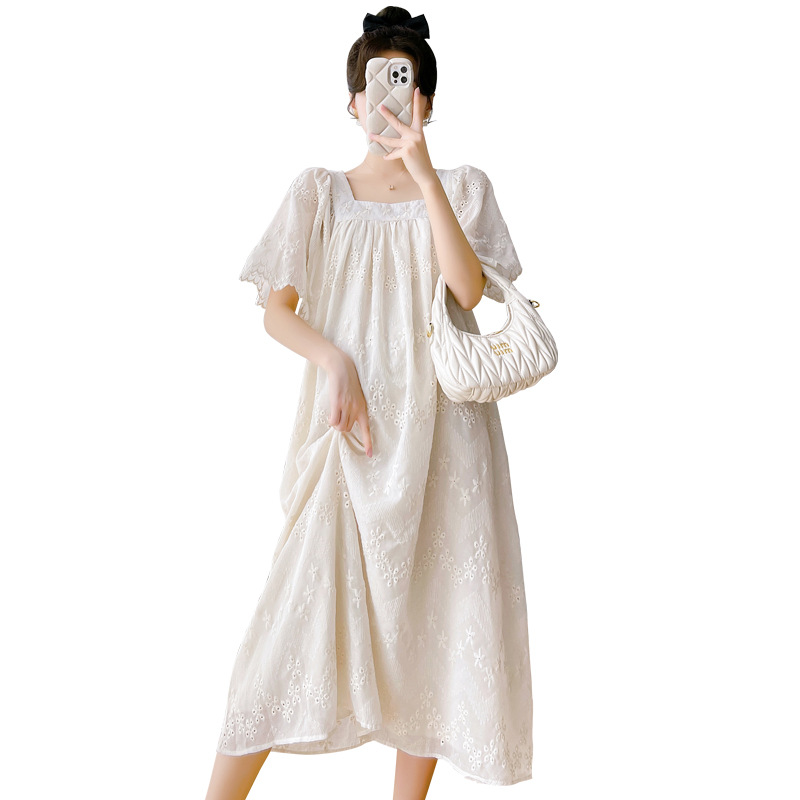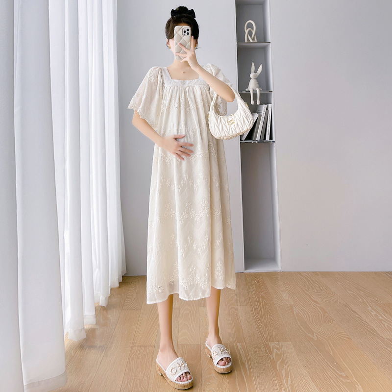| nameOriginal | Real shot maternity 2024 summer hemp yarn crochet embroidery long pregnant women dress |