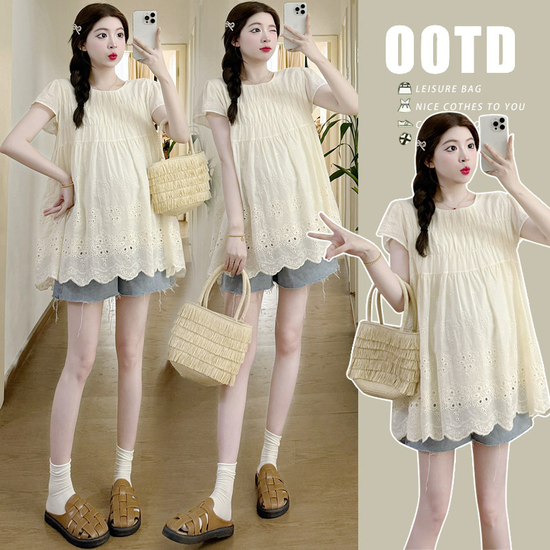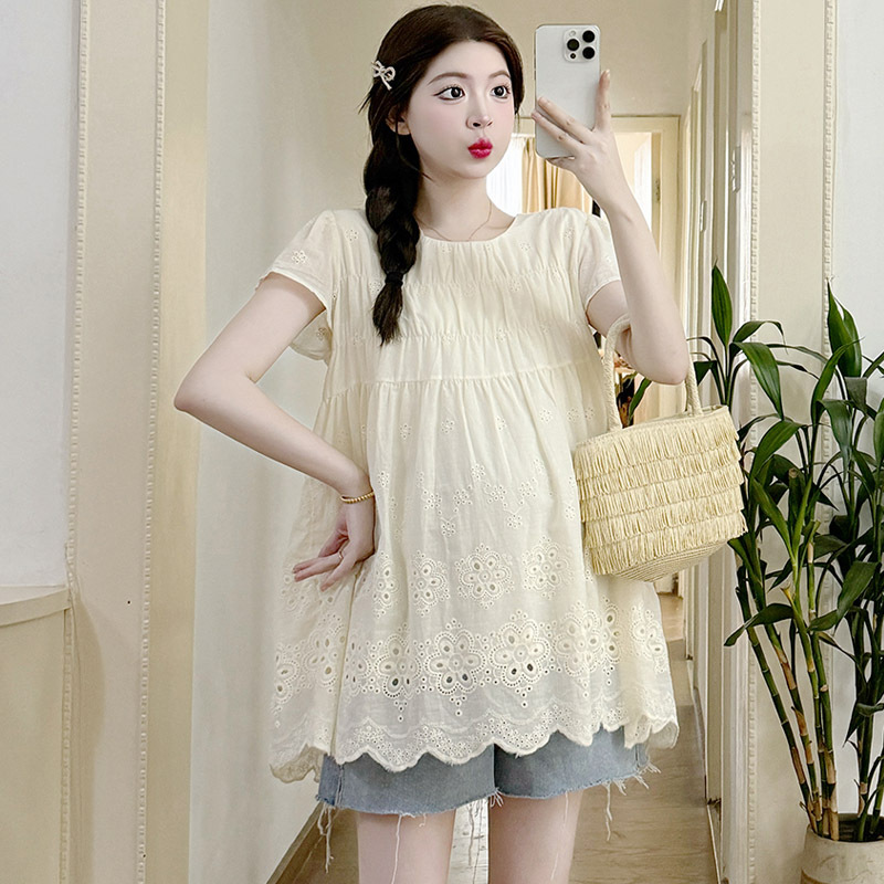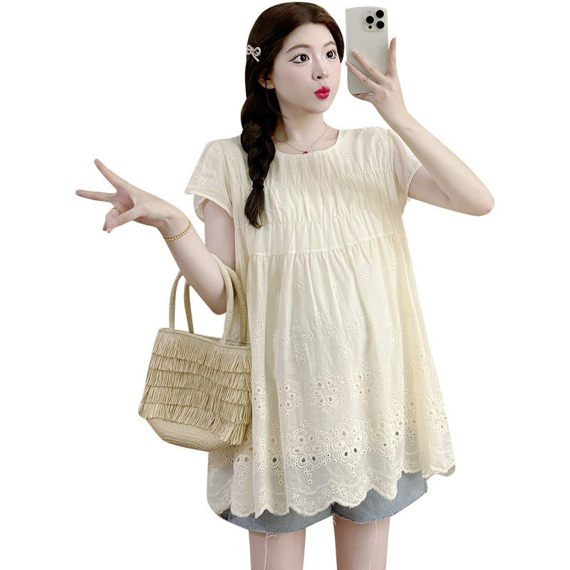 | nameOriginal | Real Shot Maternity Cotton and Linen Heavy Craft Embroidered All-match Loose Top |