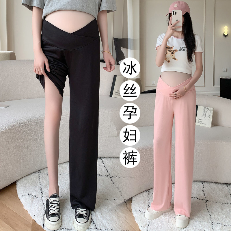 Real shot maternity pants wide leg pants summer thin ice silk outer wear casual pants straight pants loose mosquito-proof pants summer wear