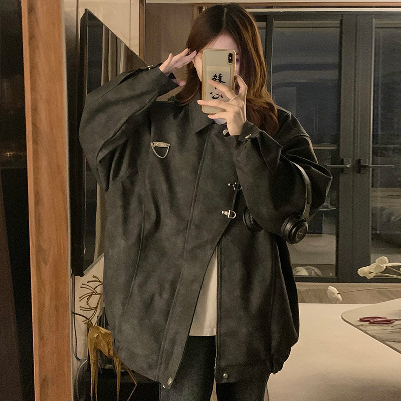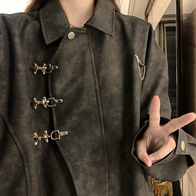 | nameOriginal | Real Shot Metal Buckle Suede Lapel Coat Coat Women's American Style Retro Design Sense Niche 2024 Spring Student |