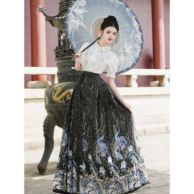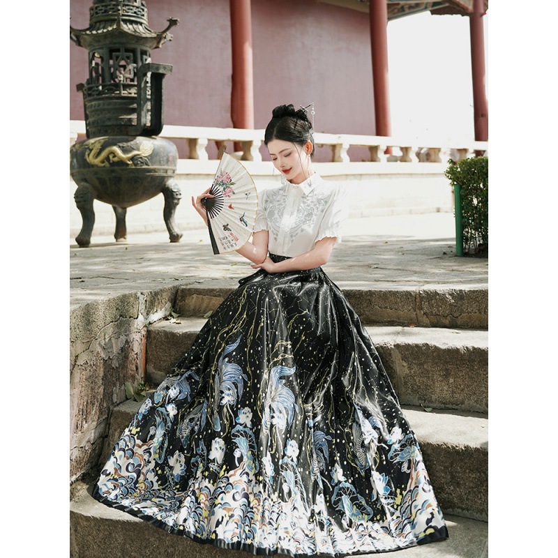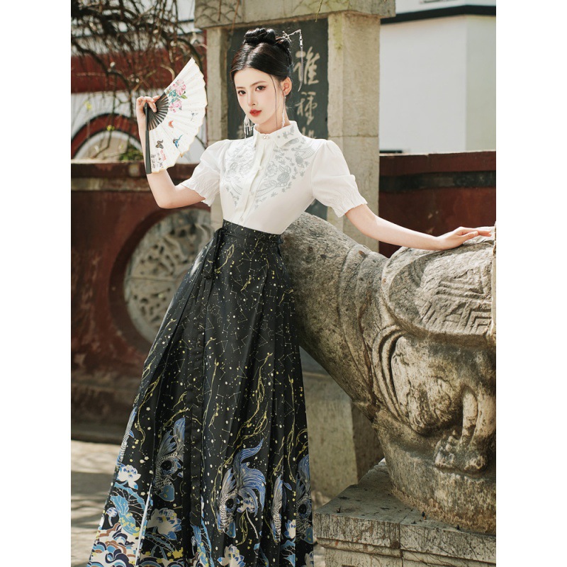 | nameOriginal | Real shot national style Han clothing Han element embroidered short sleeve jacket satin horse skirt suit price limit 40 |
