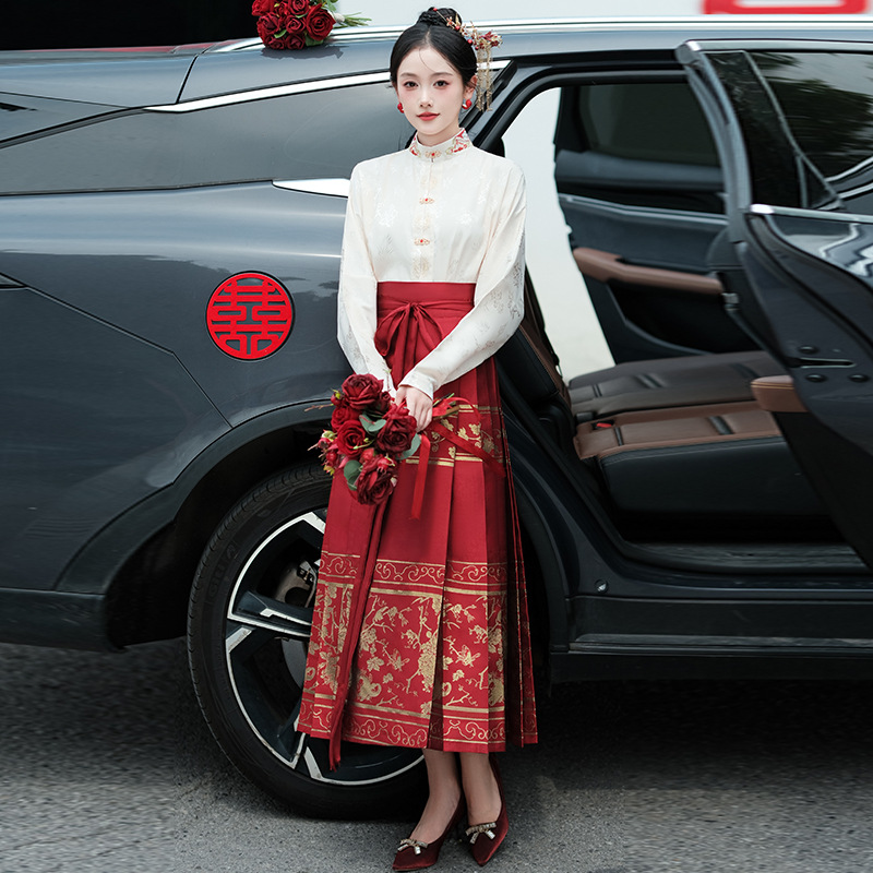 | nameOriginal | Real shot new Chinese retro festive stand collar jacquard one-piece oversized swing heavy-duty woven gold embroidered vest skirt suit |