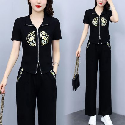 | nameOriginal | Real Shot New Chinese Sports Casual Suit Women's 2024 Summer New High-end Sense Short-sleeved Trousers Buckle Two-piece Set |