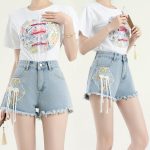 | nameOriginal | Real shot new Chinese style Denim shorts women's 2024 summer fashion personalized embroidered national fashion A- Line hot pants |