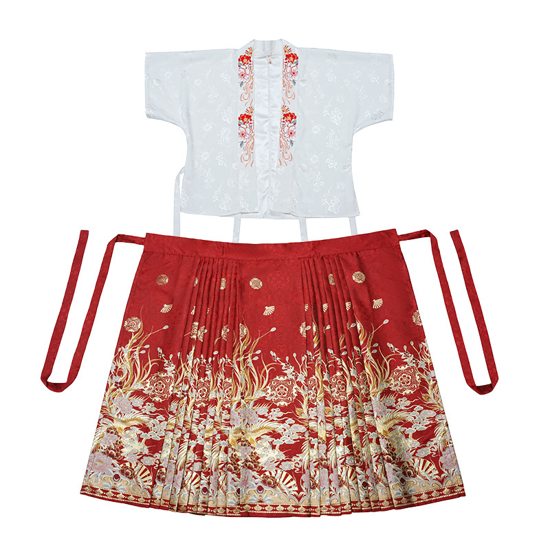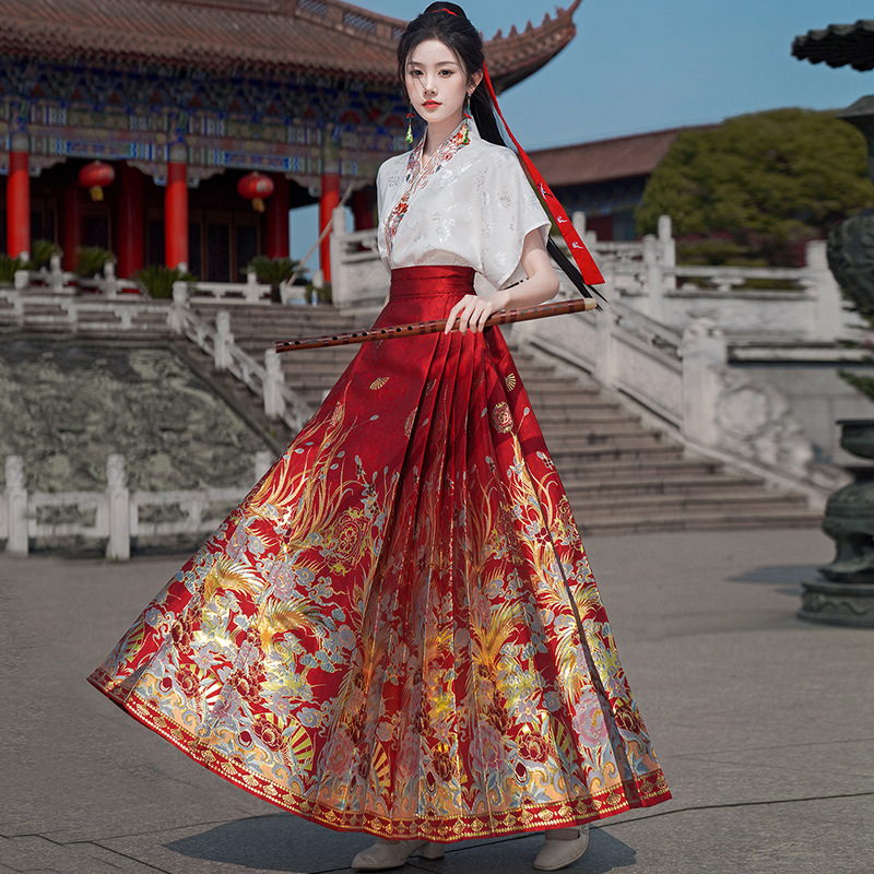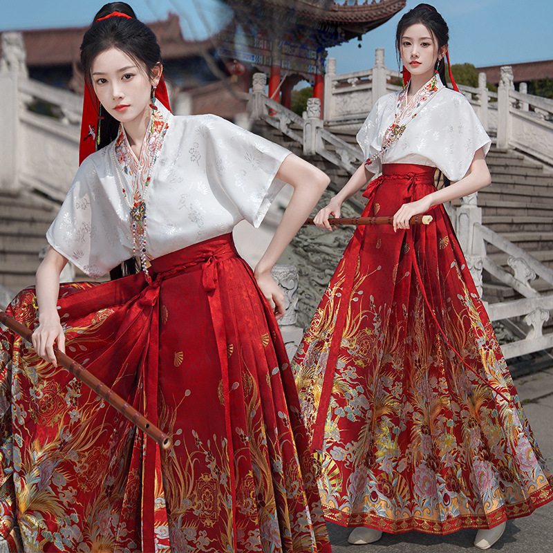 Real Shot New Chinese Style Heavy Industry Jacquard Embroidered Slant Placket Women’s Top One-piece Makeup Flower Weaved Gold Embroidered Horse Face Skirt Set