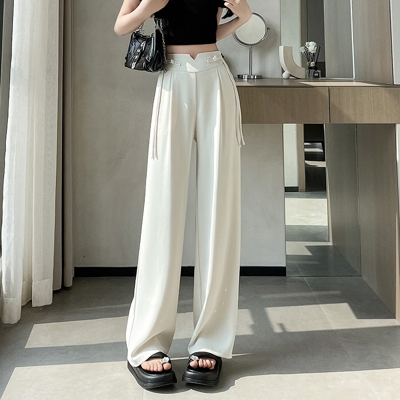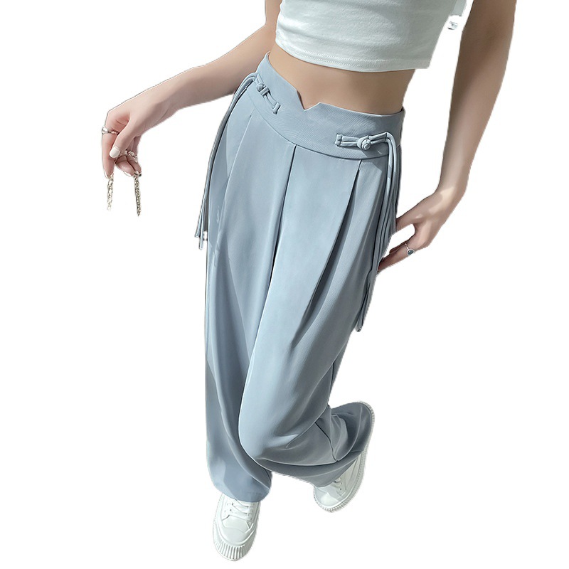 | nameOriginal | Real shot new Chinese style ice silk suit wide leg pants women's new buckle slim straight casual pants sunscreen pants |
