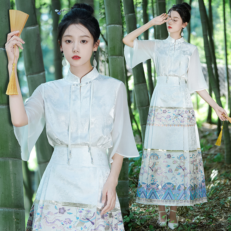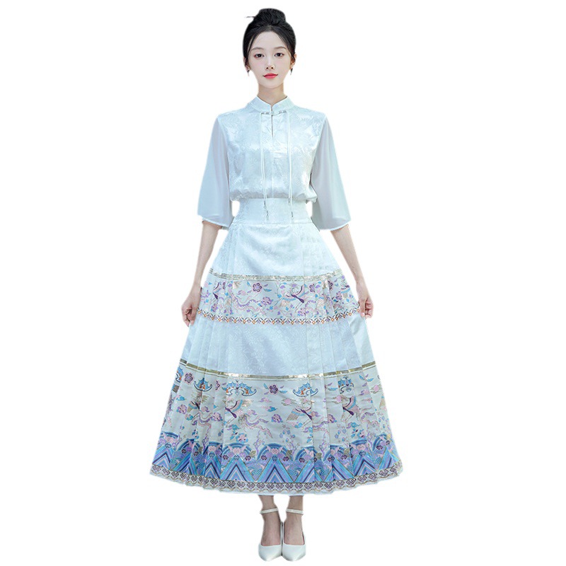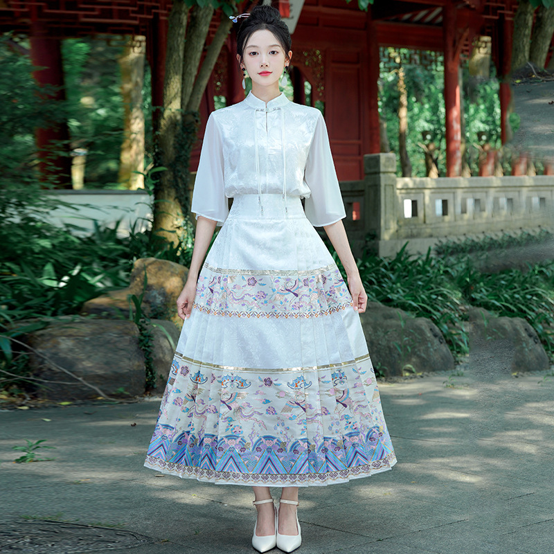 | nameOriginal | Real shot new Chinese style women's stand collar buckle vintage jacquard heavy embroidery Phoenix Dance nine days horse face dress Tang suit two-piece set |