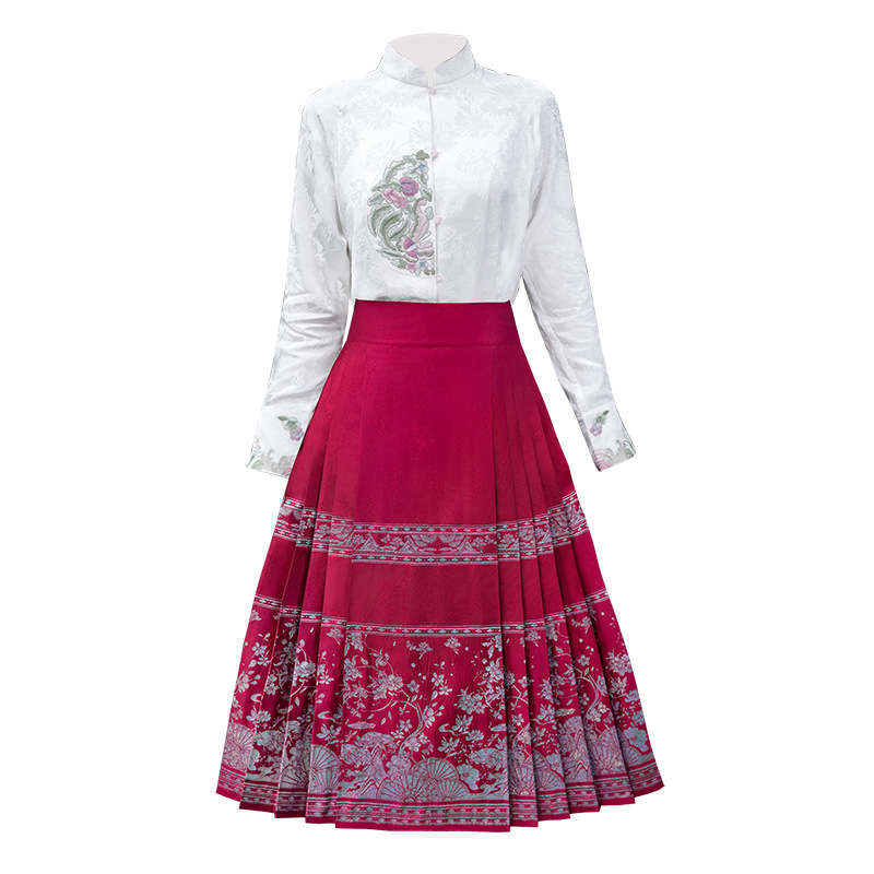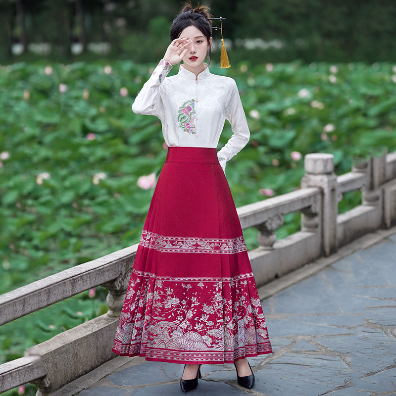 | nameOriginal | Real shot new Chinese women's clothing stand collar jacquard embroidery buckle vintage heavy embroidery woven gold vest skirt two-piece set |